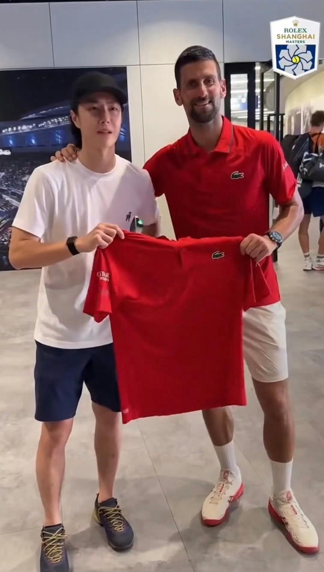 赛后王一博与德约科维奇合影,并获赠了一件德约科维奇的签名球衣!实名羡慕了![流鼻血][流鼻血][流鼻血]