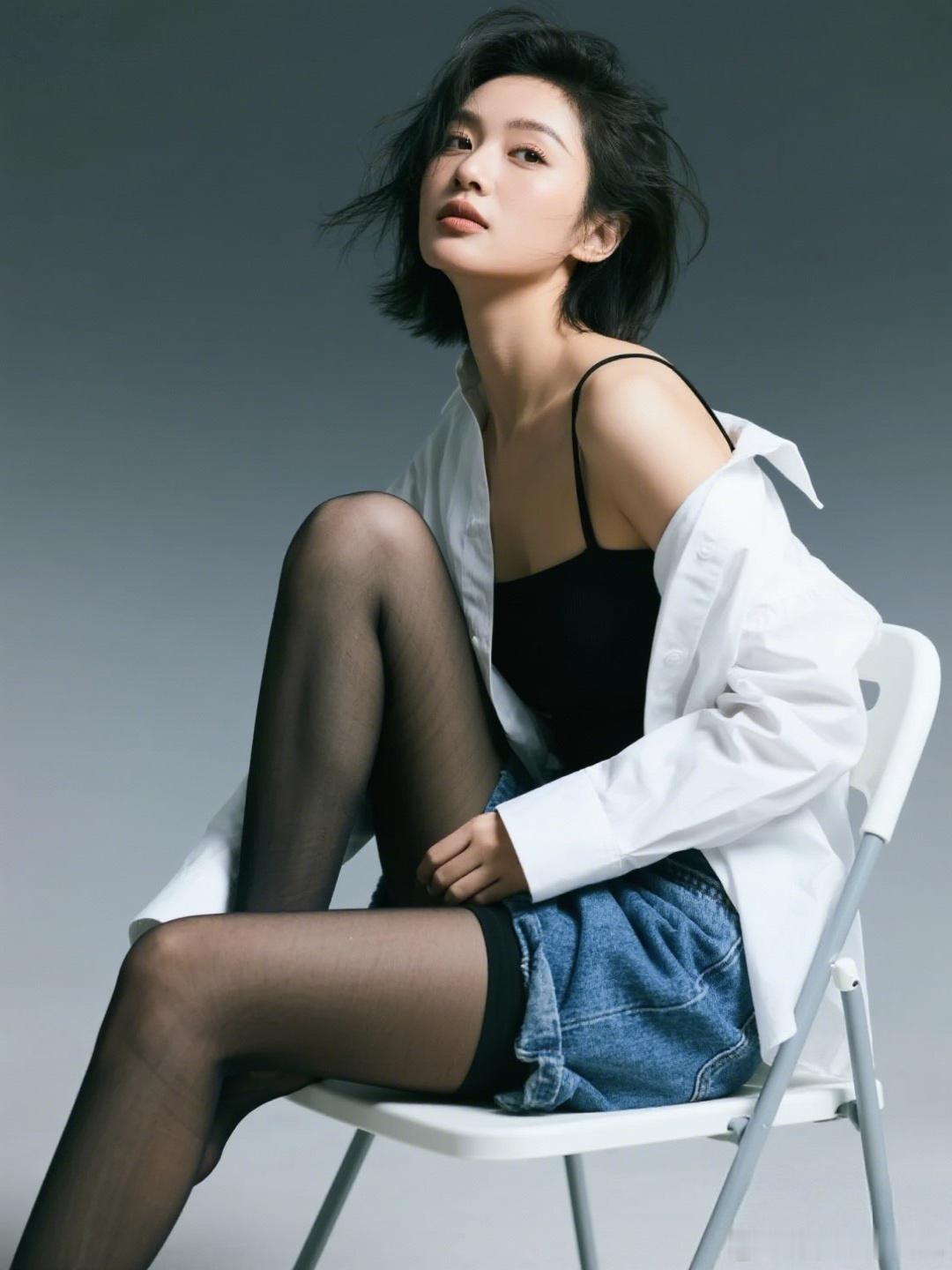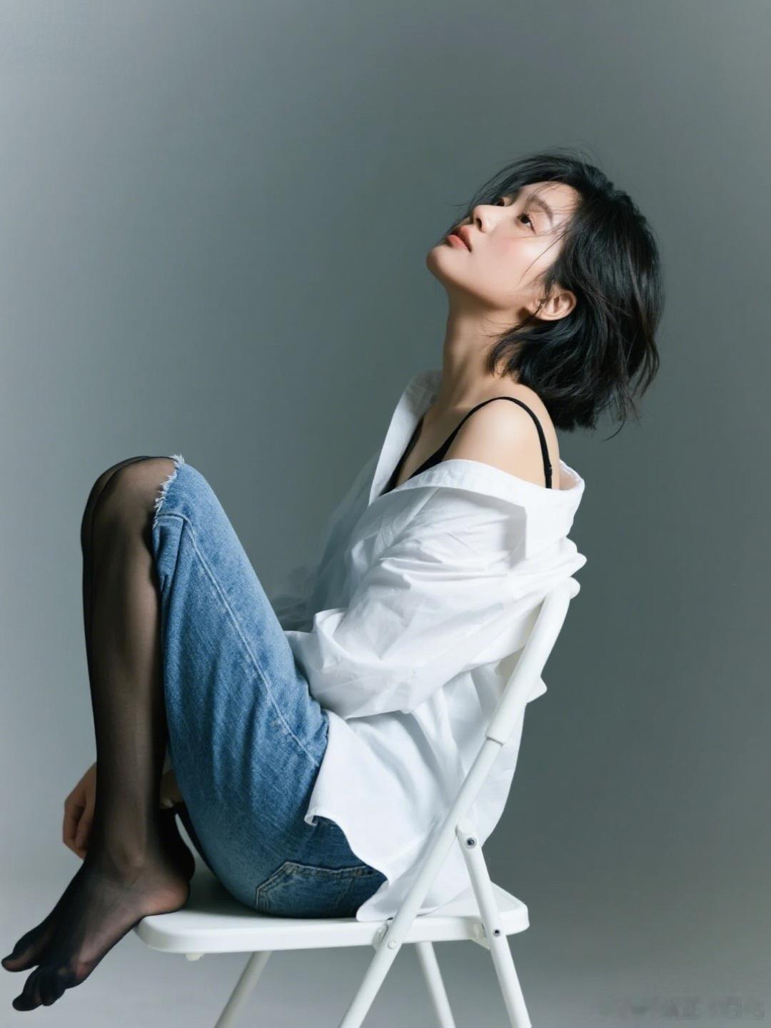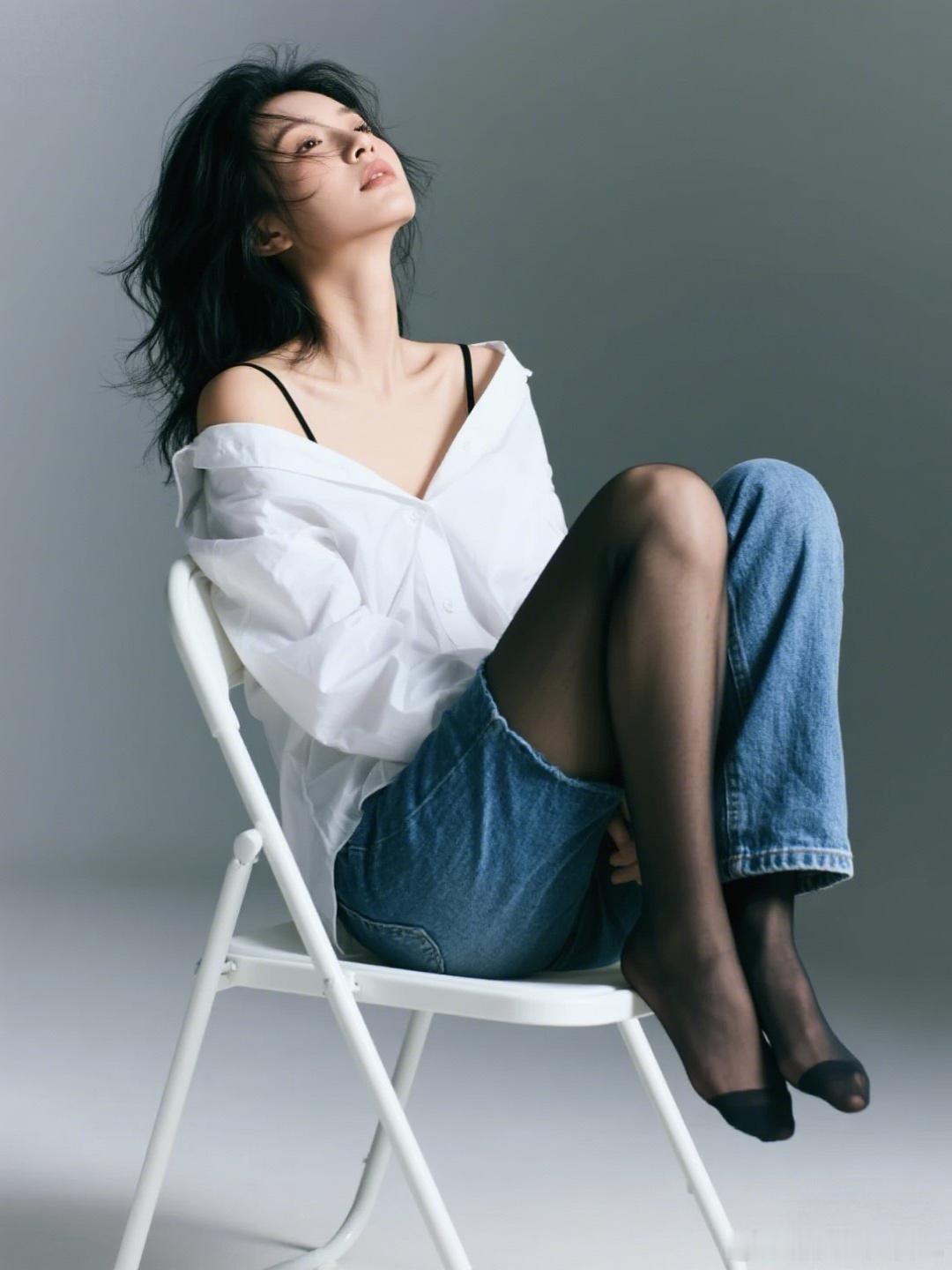 精彩人像[超话]白衬衫,牛仔裤配黑丝美女国庆节