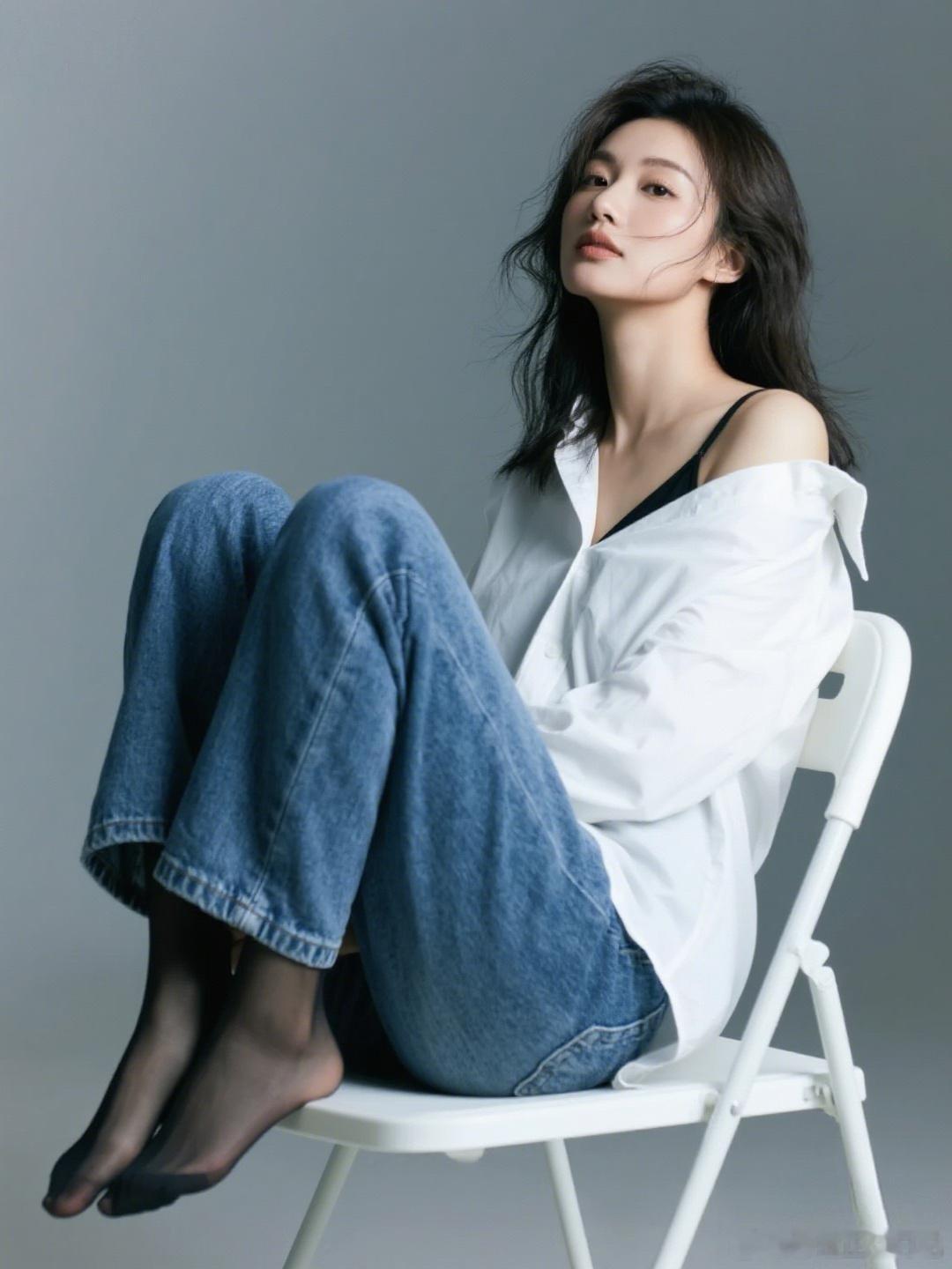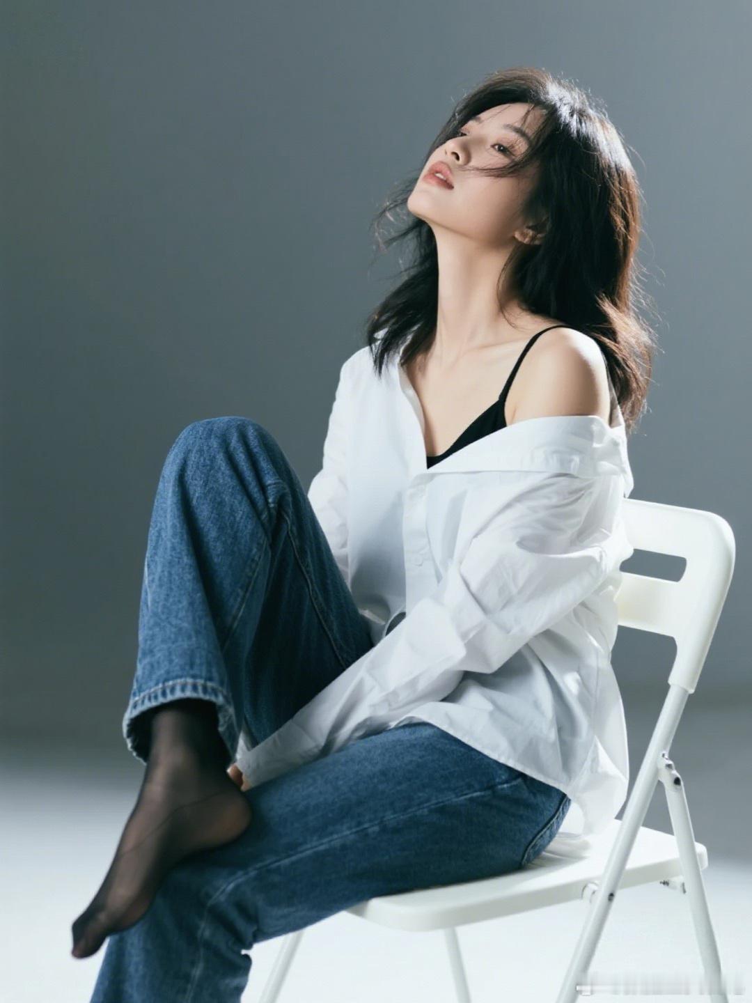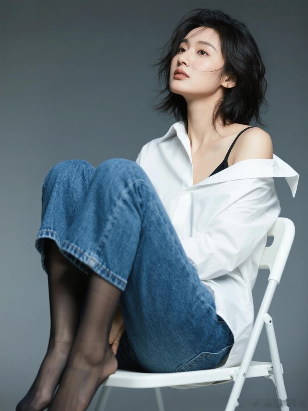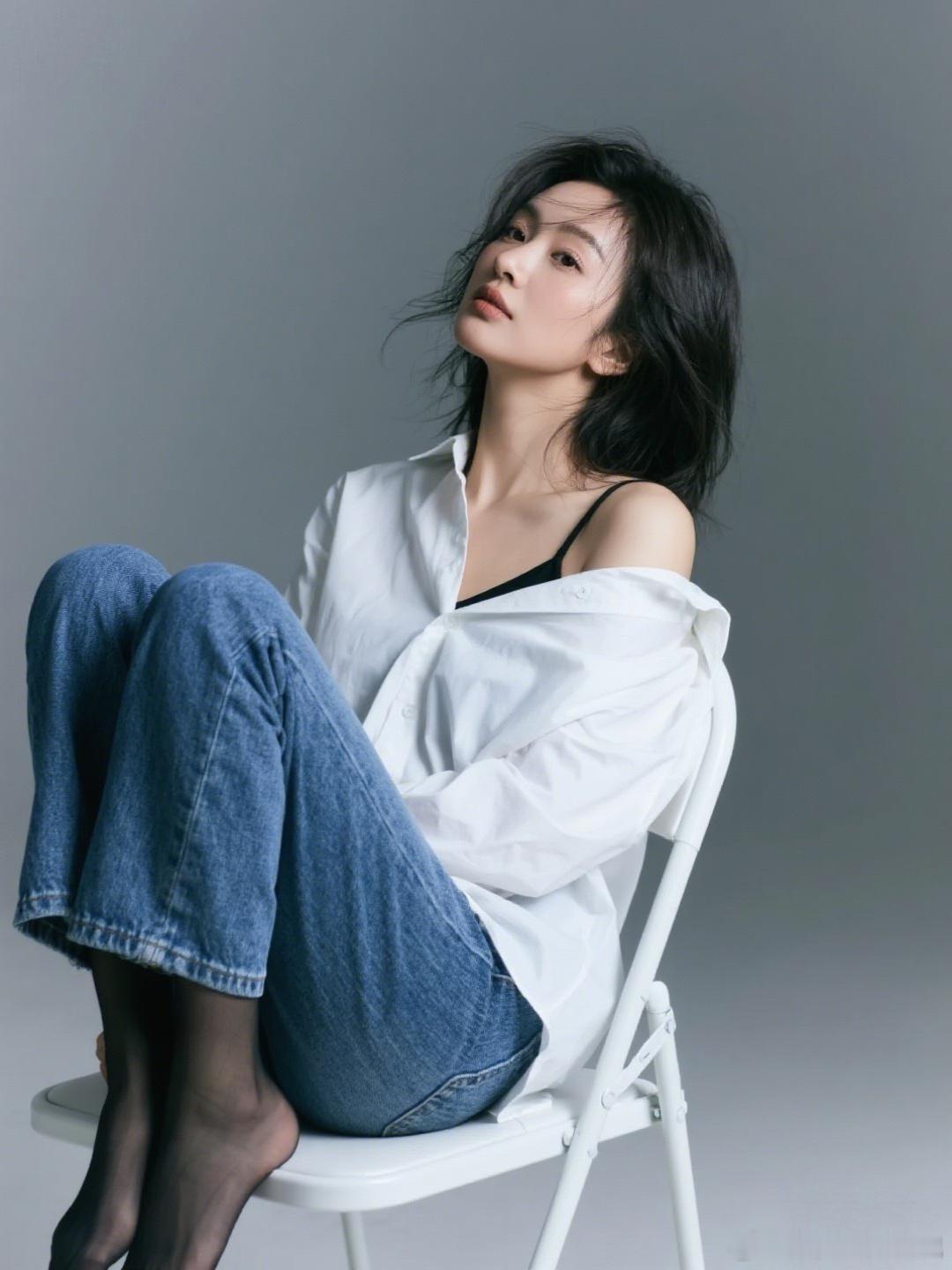精彩人像[超话]白衬衫,牛仔裤配黑丝美女国庆节