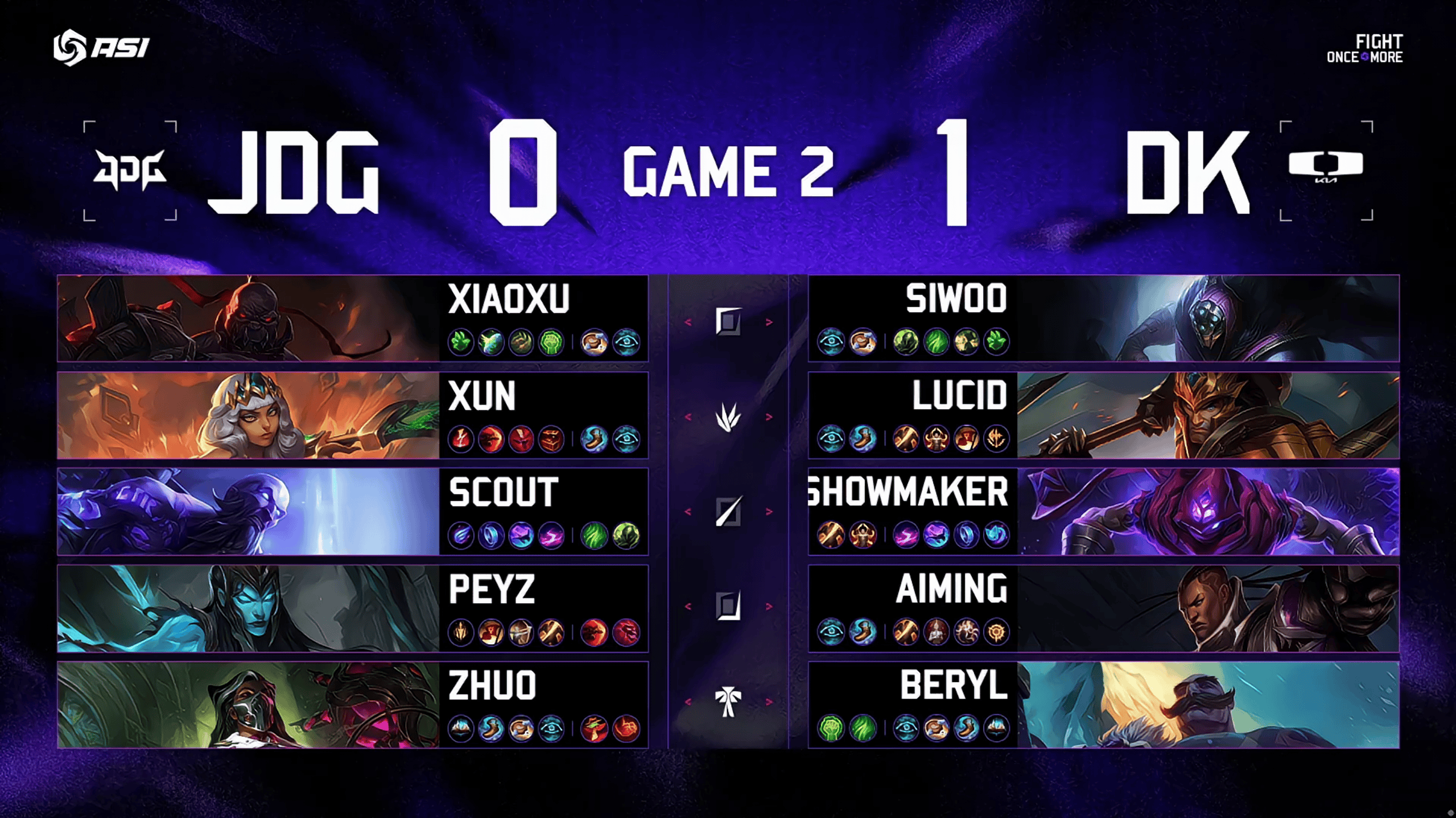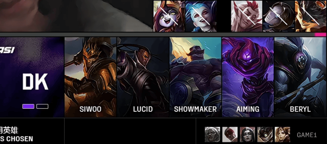 DK选用:Siwoo贾克斯、Lucid皇子、ShowMaker玛尔扎哈、Aiming卢锡安、BeryL布隆