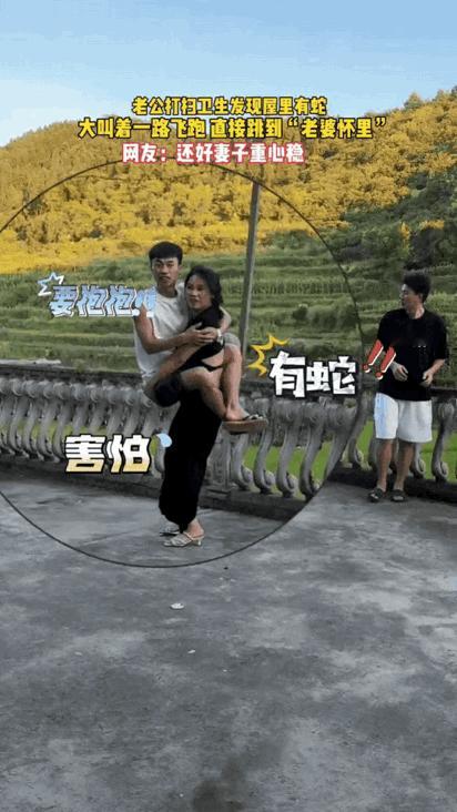 笑不活了!老公打扫卫生时发现家里有蛇,吓得大叫一路狂奔到院子里,直接跳到老婆怀里