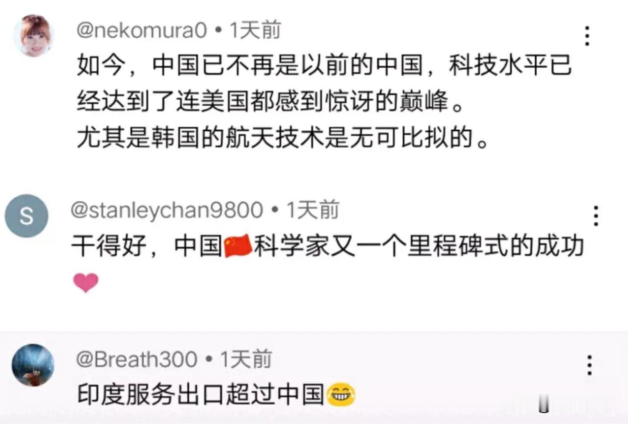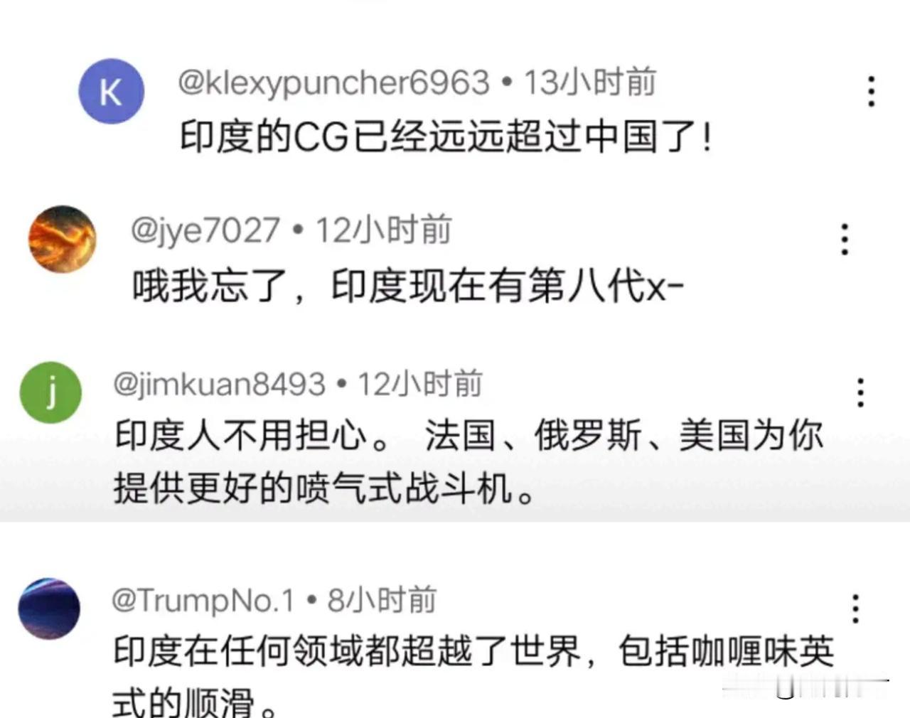 一下就被逗乐了,老外的回应令印度网友无言以对。 中美两国在科技领域的竞争引起了国外的热议。或许为了引起注意,又或许是其他,印网友就来了句:印度的服务产业出口额领先中国。让他没想到是,话刚落下幽默风趣的回应就一句接一句。 也难怪会被其他老外给招呼。因为,在这些老外的眼里印度与中美两国不在一个维度上…