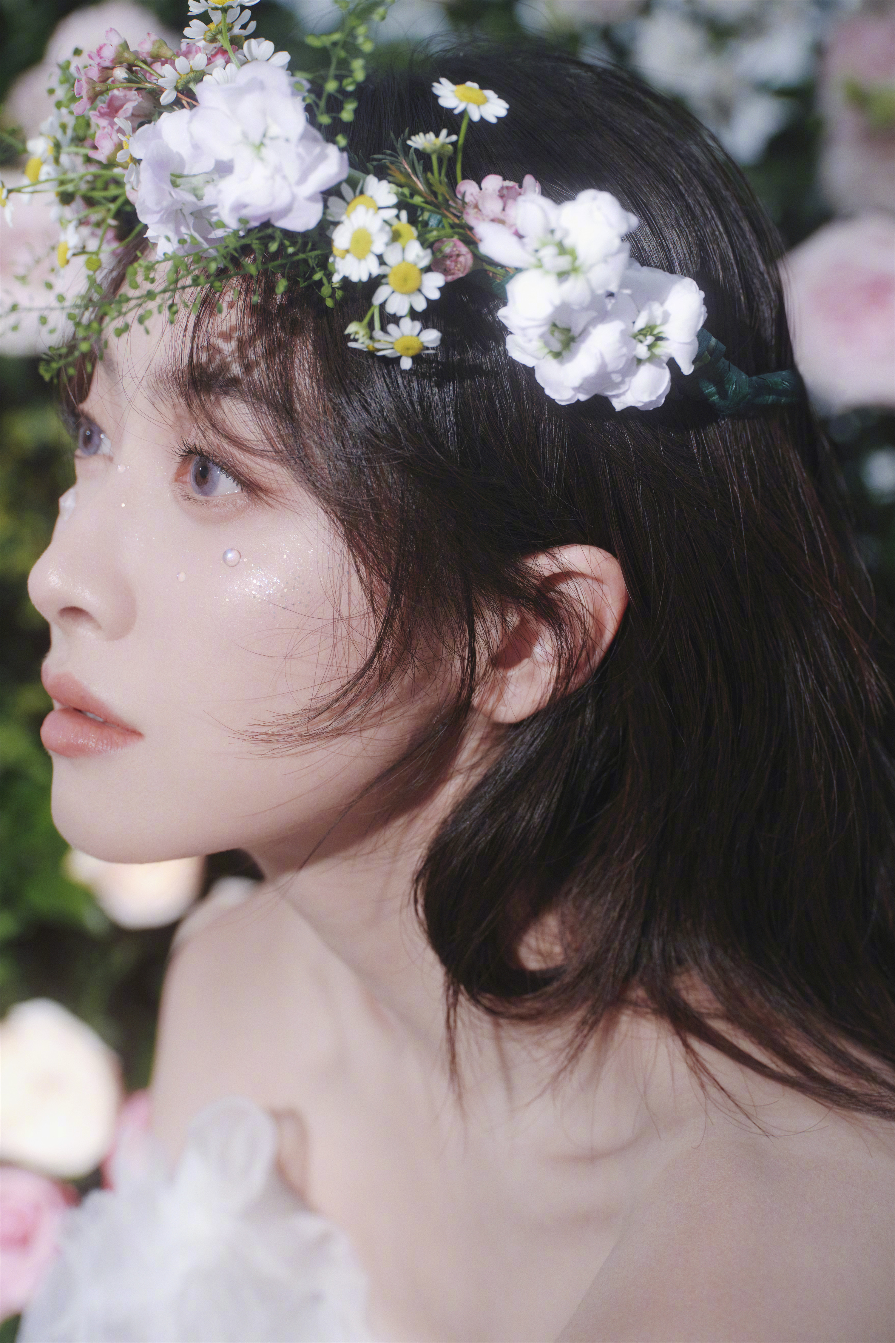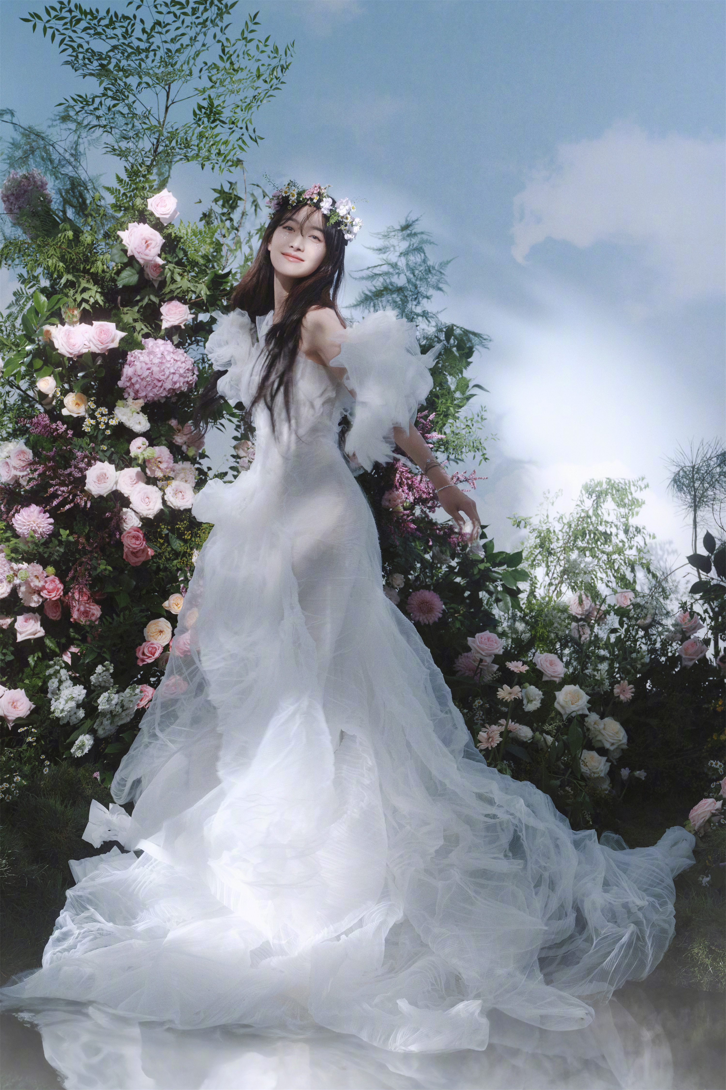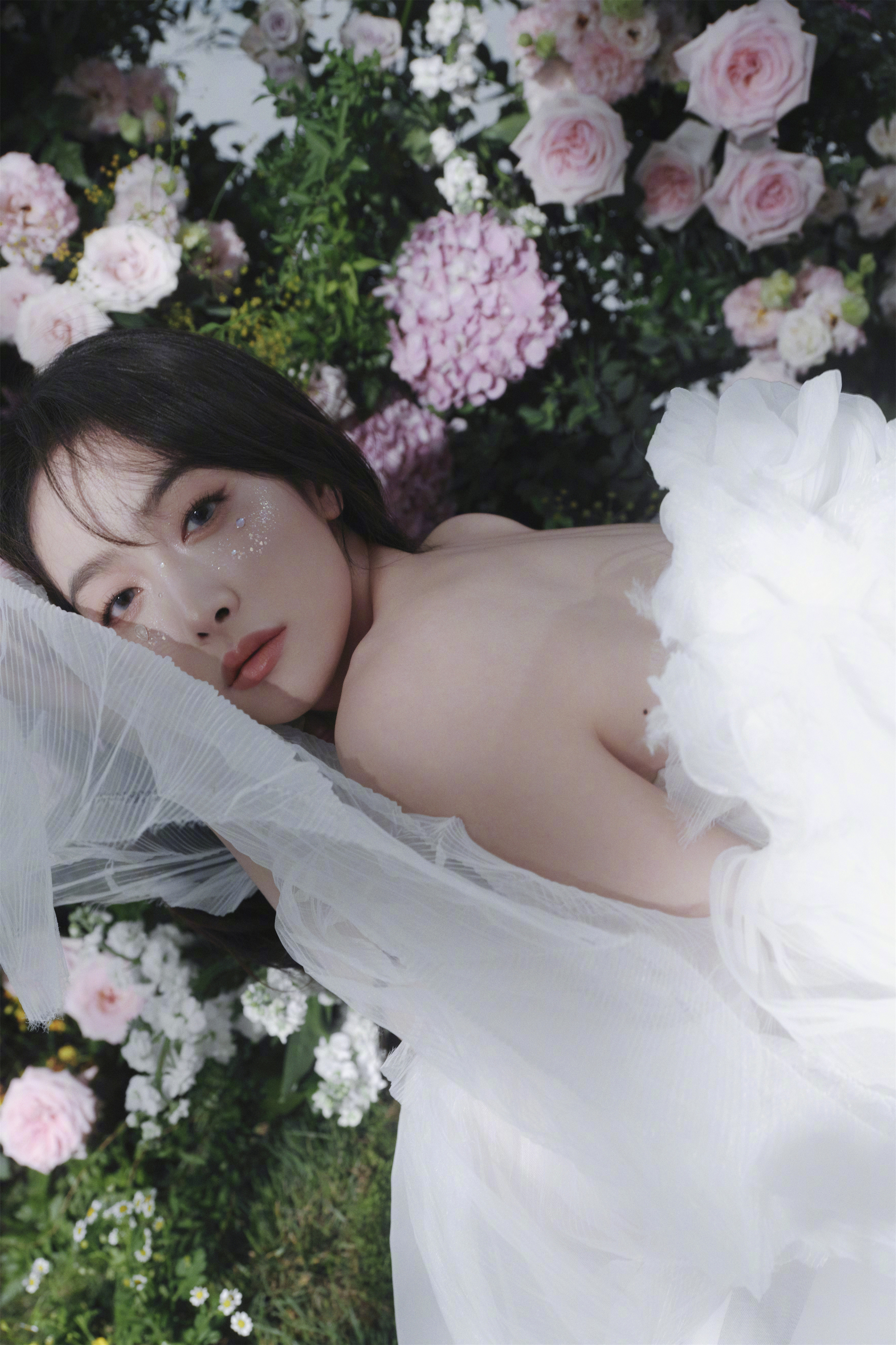 宋茜甜蜜蜜,白色婚纱鲜花美人