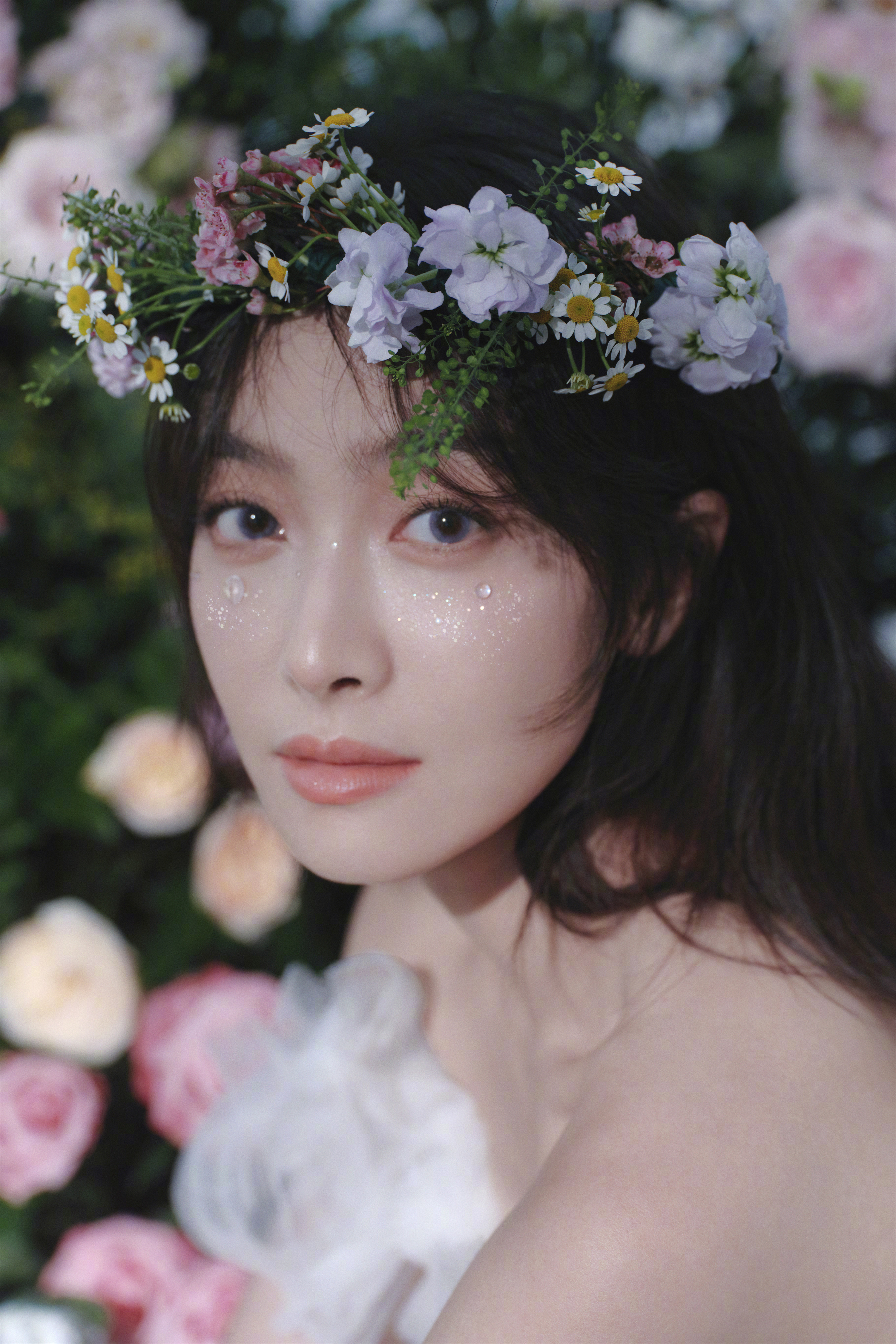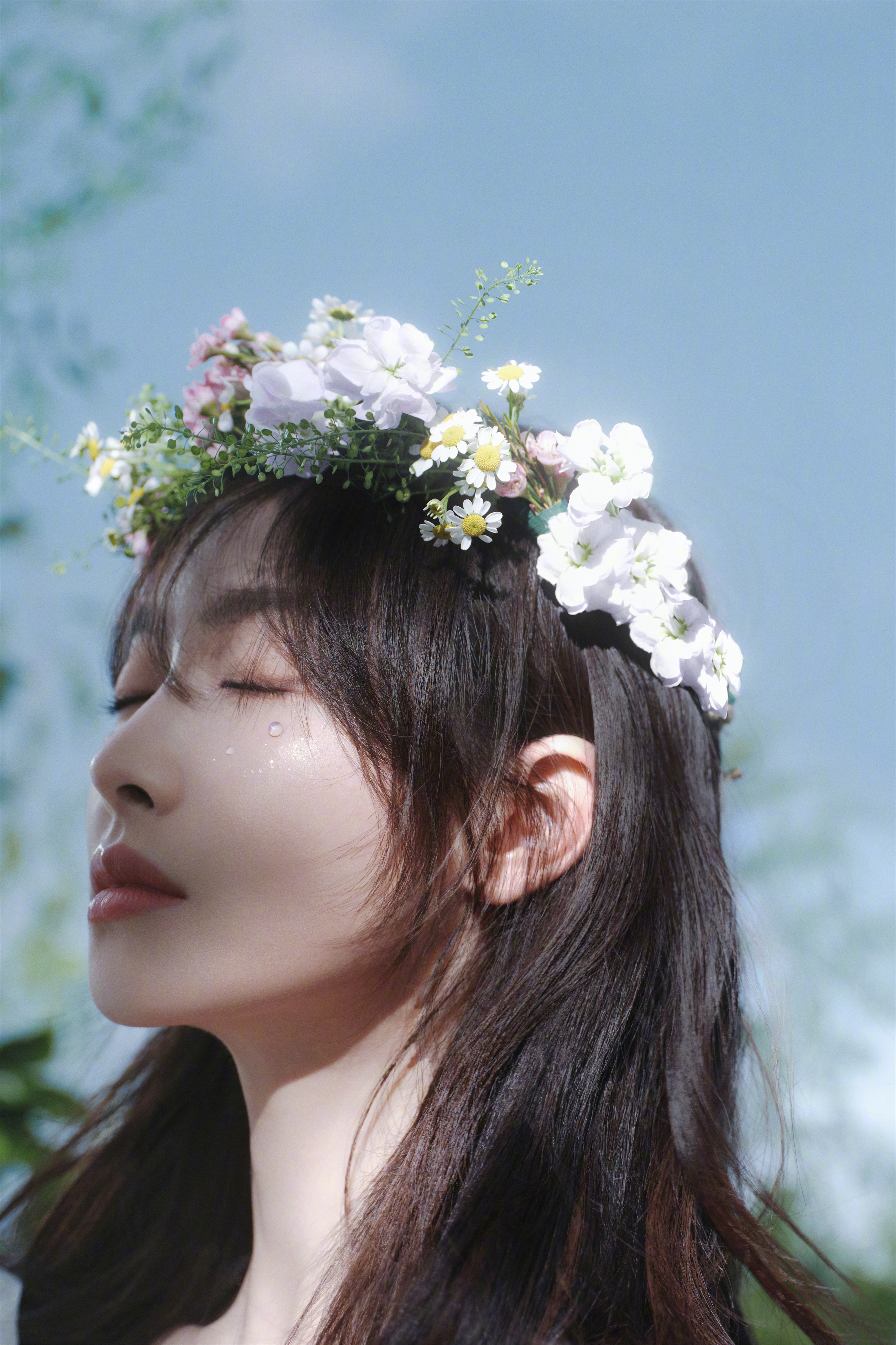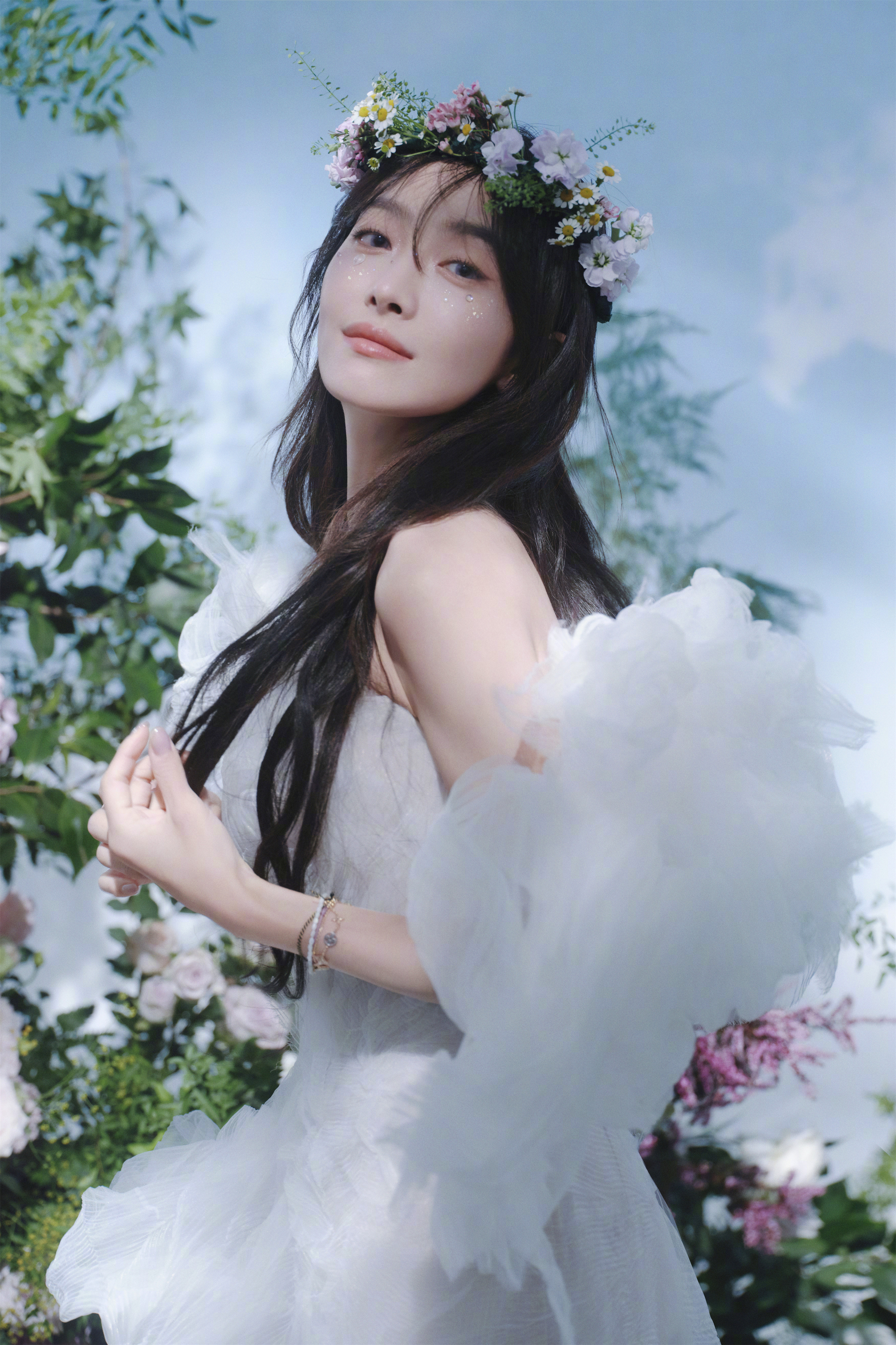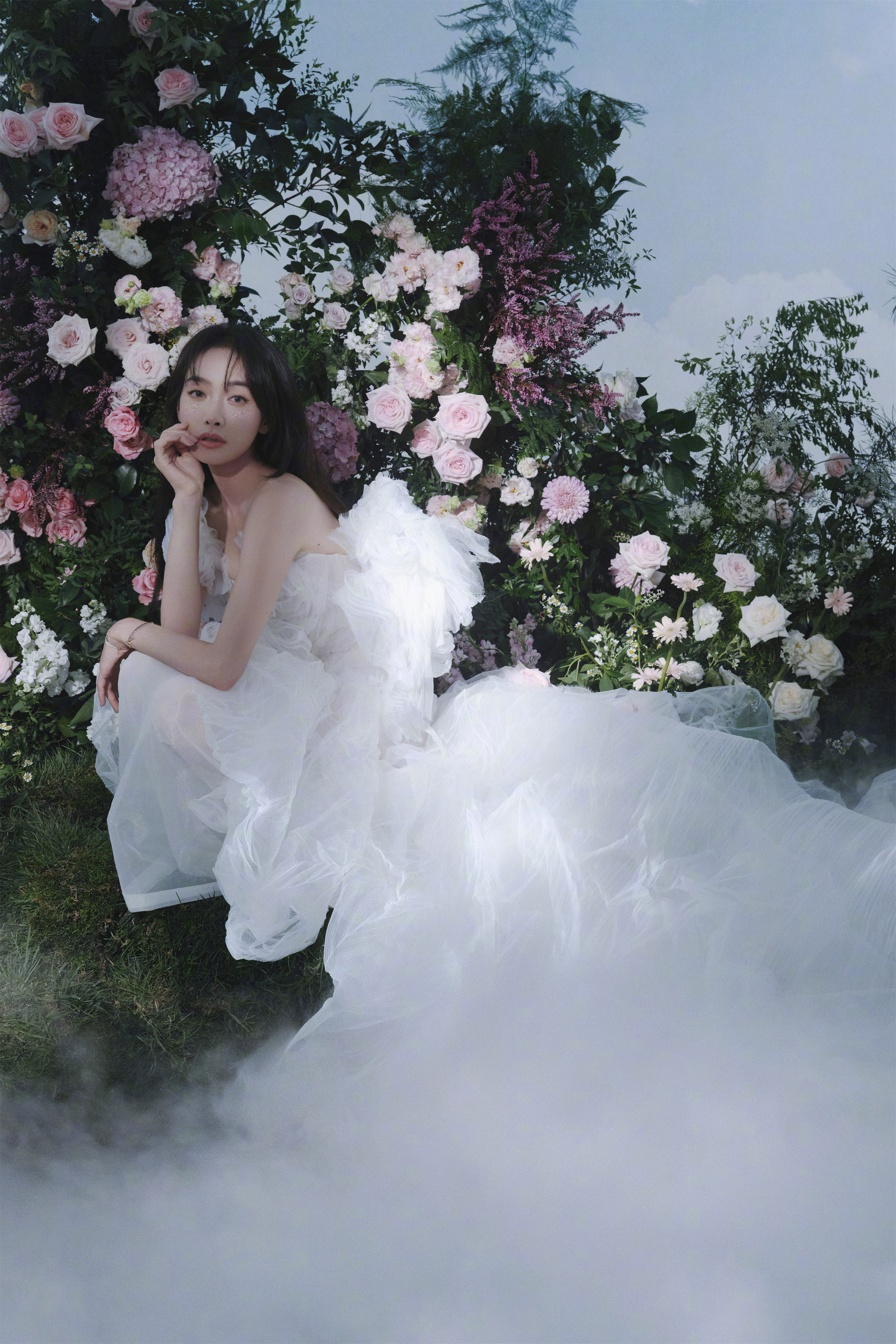 宋茜甜蜜蜜,白色婚纱鲜花美人