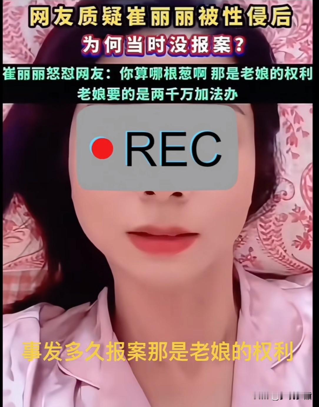 你算哪根葱呀? 事发多久报案,那是老娘的权利 老娘要的是2000万加法办。这目标可以说是相当明确了,这件事不管是什么样的原因,什么样的起因,之前发生了什么,现在好像都已经不那么重要了。 感觉崔丽丽是全网最希望把自己的丑事宣扬的所有人都知道的,她不停暴露自己的本性,骂人,情绪失控,现在真的感觉事件变了味道了,之前觉得她是受害者,同情她,心疼她,但现在真的让人很厌恶。 从之前的受害者,到现在的全网都在骂,她还不去反思,反而是想着利用热度,涨粉挣钱。 这真是给了我们所有同情她的人狠狠一巴掌呀,她现在离自己的初心越来越远了,大家对她的善意终将会被消耗完的,到那时,真的没有人能够帮她了。崔丽丽