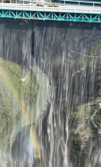 “解释不清了!”贵州,一男子准备用无人机拍摄花江峡谷大桥,结果,刚起飞就发现绝美一幕,水幕调试时,竟然在大桥下方,出现了大型彩虹,连老天爷都在为“世界第一高桥”增光添彩,飞流直下三千尺在这一刻具象化了,网友:若是李白看到,又会如何写…… 9月下旬的贵州,秋阳把花江大峡谷的山染得更绿,谷底的江水泛着细碎的光。 贞丰县的摄影爱好者王先生背着无人机,特意赶在花江峡谷大桥通车前过来,想拍下这座“世界第一高桥”的全貌。 他选了个视野开阔的山坡站定,指尖划过遥控器,无人机“嗡”地一声腾空。 刚升到离地面十几米的高度,耳边突然传来旁边游客的轻呼:“快看桥下!” 王先生下意识抬头,顺着大家的目光往大桥方向望。 桥边两道银亮的水柱正从桥身两侧的装置里喷涌而出,在空中迅速散开,变成细密的水雾,像给深褐色的峡谷披上了一层半透明的白纱。 还没等他反应过来,斜照的阳光突然穿透水雾,一道彩虹“唰”地冒了出来。 红、橙、黄、绿、蓝、靛、紫七种颜色分得清清楚楚,连最容易被忽略的淡紫色都清晰可见。 彩虹一头牢牢“粘”在大桥的桥墩上,另一头轻轻搭在对面的山腰间,银白色的桥身、苍翠的山体、彩色的虹弧凑在一起,像一幅突然被点亮的画。 “当时手都抖了,赶紧把无人机镜头往彩虹那边转,连呼吸都放轻了。” 后来王先生在视频里回忆,他怕动作太大连彩虹都惊走,盯着屏幕里的画面,看着水雾慢慢飘。 彩虹却稳稳地挂在那里,直到水幕调试结束才渐渐淡去。 这段不到一分钟的视频发到网上后,很快就火了,评论区里满是惊叹,有人说“这是老天爷给大桥的通车贺礼吧”。 还有人调侃“要是李白看到这场景,肯定得放下酒杯,写首比‘飞流直下三千尺’更厉害的诗”。 这道意外出现的彩虹,让更多人注意到这座即将“出道”的超级大桥。 花江峡谷大桥是贵州六枝至安龙高速公路的关键工程,全长2890米,主桥跨径达到1420米,从桥面到谷底水面的高度有625米。 这两个数据让它拿下了“双世界第一”,主桥跨径在山区桥梁里排世界第一,高度也是世界第一,难怪大家都叫它“横竖都是世界第一的桥”。 从2022年初开工到现在,建设团队在这个被称为“地球裂缝”的峡谷里奋战了三年多。 峡谷深、山势陡,施工难度极大,建设者们用了不少“黑科技”,靠北斗系统精准定位,让高空作业不差分毫。 用无人机在600米高空“穿针引线”,铺设主缆的材料;就像给大桥装了“智慧大脑”,再难的挑战也一步步攻克下来。 懂气象的网友后来解释,那天的彩虹是“天时地利人和”的巧合。彩虹形成得满足两个条件。 一是得有均匀的水雾,二是阳光角度要刚好,得是“侧着照”的角度,不能太斜也不能太正。 刚好那天下午的太阳位置特别合适,工作人员又在调试水幕,喷出的水雾细又匀,两个条件凑在一起,才出了这么壮观的彩虹。 不是提前设计好的,就是大自然偶然间给这座新桥送的“惊喜”。 这座桥的“厉害”不止在外观和高度上。 主缆是悬索桥的“生命线”,一旦装上去就没法更换,建设团队特意在主缆里埋了三根“智慧索”。 里面装着光纤光栅传感器,能24小时监测主缆的应力、温度和湿度。 要是湿度超过64%,除湿机还会自动启动,防止主缆生锈,给大桥的百年寿命上了道“保险”。 还有承受重量的索鞍,以前都是用铸造工艺,这次改成了锻焊结构,经过几万次精密锻造,单件重量降到了41.3吨。 抗压强度反而提高了44%,又轻又结实,吊装的时候省了不少力。 就连锚碇用的混凝土,都是用路基挖出来的白云岩碎石磨成粉代替粉煤灰做的,光这一项就省了500多万材料费,把“就地取材”用到了极致。 以前从贞丰县到关岭县,得绕着峡谷走2个小时的山路,遇到下雨天还容易堵车。 但现在开车从桥上走,2分钟就能跨过峡谷。 有网友说这桥是“中国桥梁界的珠穆朗玛峰”,确实,它不光是个能走车的桥,更是咱们基建技术的一张“名片”。 网上那段彩虹视频下面,还有人写了首七言诗,花江桥上云涛卷,垂瀑如帘落九天。七彩虹霓惊目处,疑是仙娥织锦悬。 它不只是缩短了两岸的距离,更会通过“桥旅融合”的新模式,让更多人感受到峡谷的美,让周边百姓的日子更有盼头。 就算李白没机会看到这一幕,咱们也能通过这座桥,看到属于这个时代的“壮丽诗篇”。