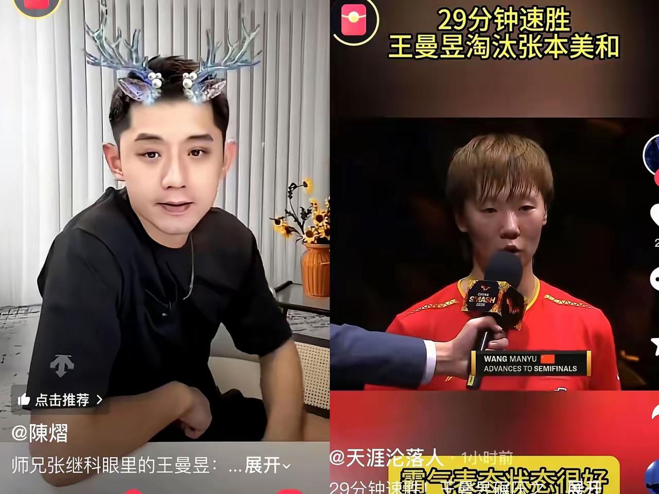 张继科对王曼昱的评价,深深触动了无数人:“对外如猛虎般勇猛,对内似绵羊般温顺”。