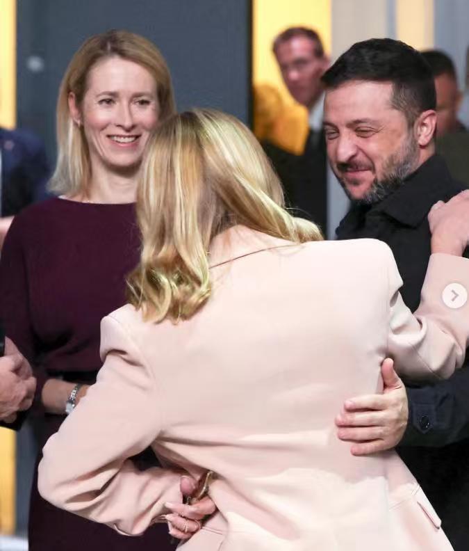 泽连斯基每次去欧洲开会,都会受到热烈的欢迎,这次更是收到了梅洛尼的拥抱!泽连斯基