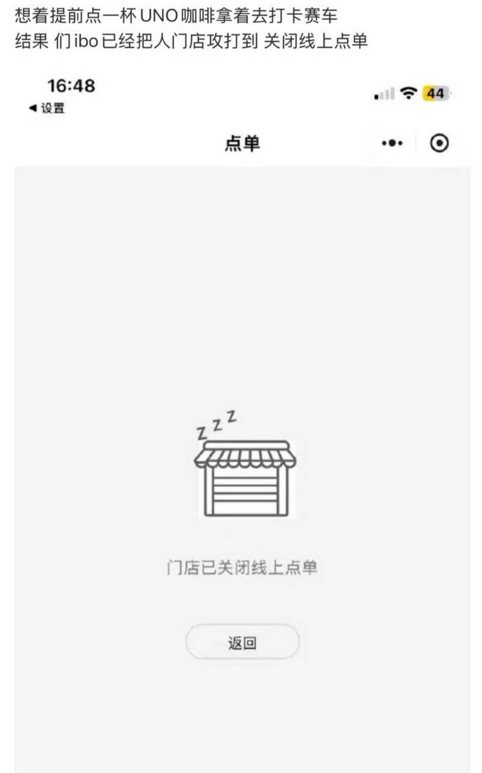 继919摩托姐姐把蔡嘉拿破仑干空以后,今天车队的咖啡店也爆单了,直接关闭线上点单,好几款都售罄了[笑cry]
