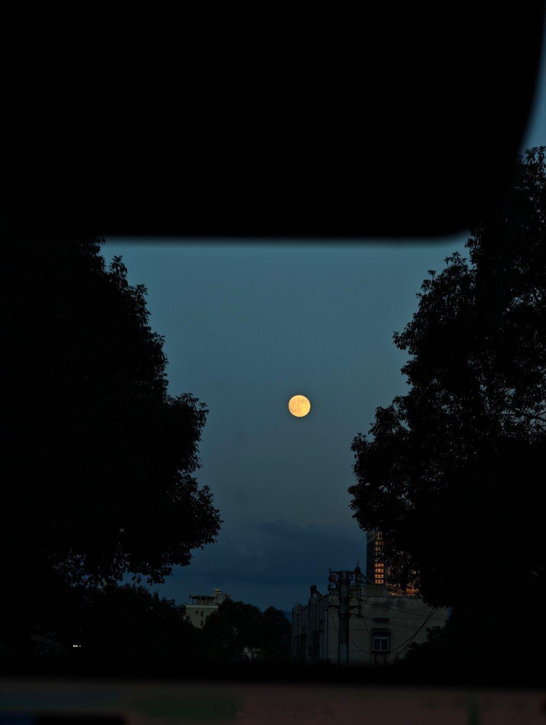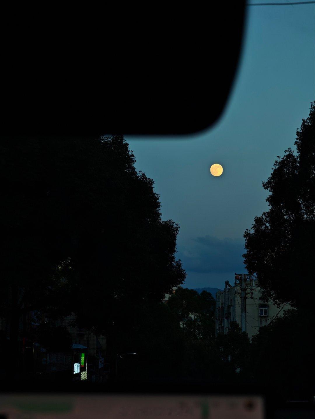 银盘似的月亮就挂在天上啦!~