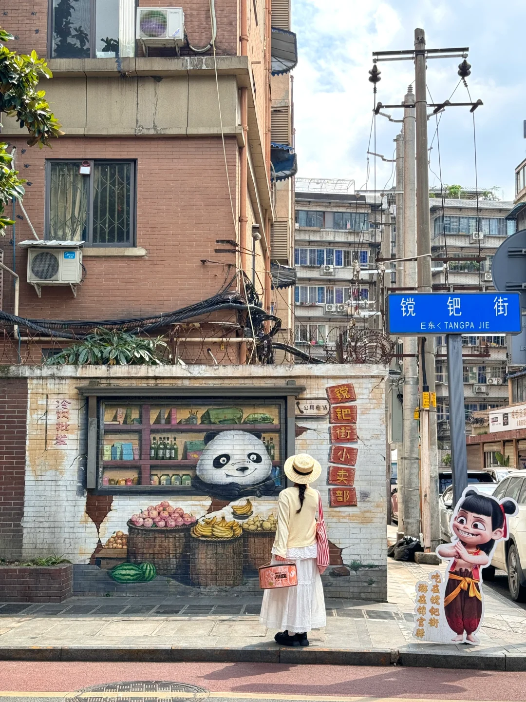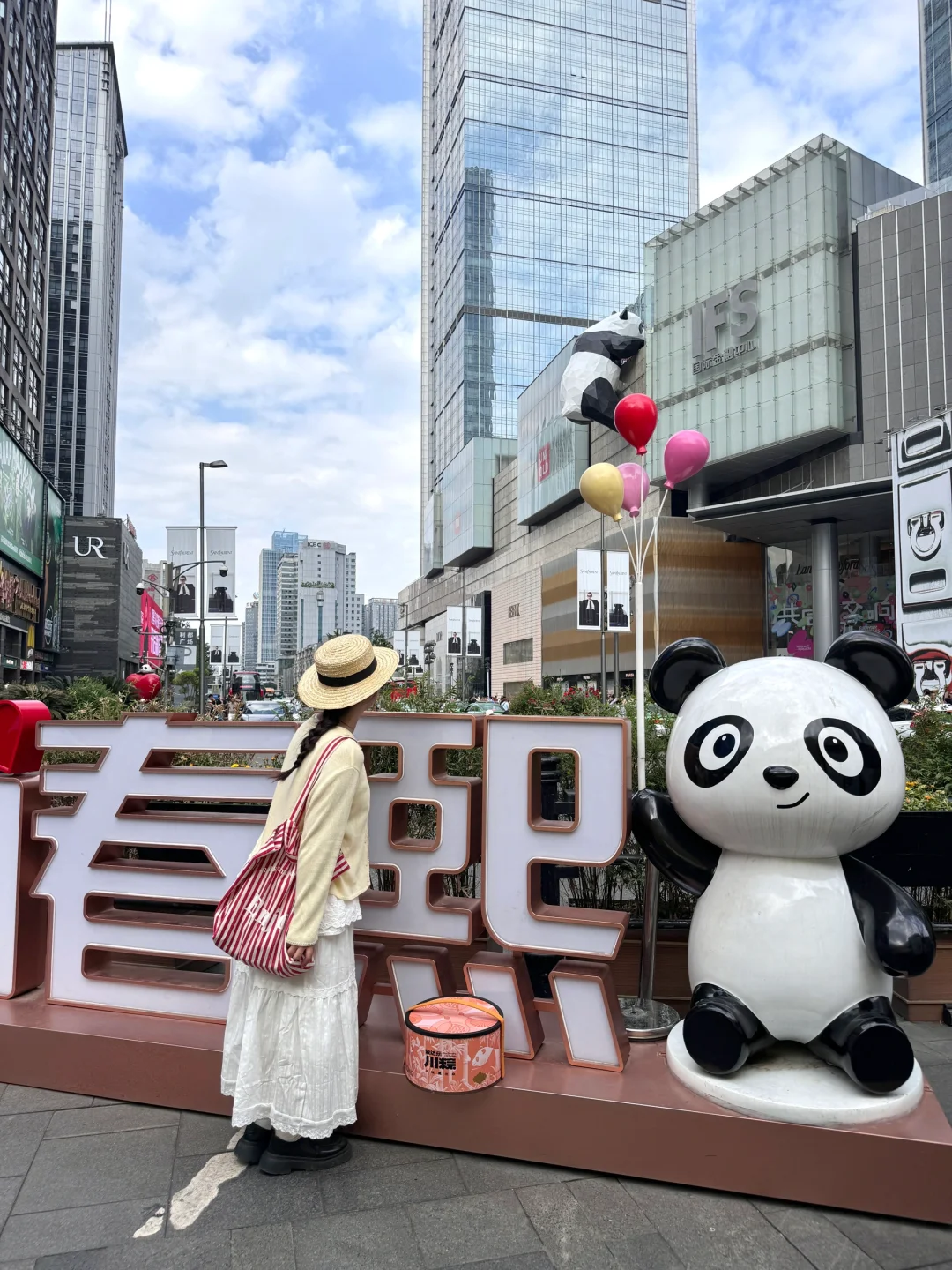 如果你第一次来成都旅游 千万不要只知道去春熙路、太古里人挤人 附近还有几条小众又有市井烟火的街巷 很适合成都半天或者成都一日游citywalk 可以拍到超多熊猫同框照片🤳 . 路线亮点: ✔️所有场景全免费!不花1分钱! ✔️暴走1公里就能get熊猫同框九连拍✌️ ✔️文艺老街+潮酷街拍一键切换 . 下面附上详细citywalk熊猫拍照路线: 春熙路熊猫➡️旁边熊猫车➡️IFS顶楼熊猫➡️镗钯街➡️熊猫书店➡️熊猫邮局 . 1️⃣春熙路熊猫/IFS顶楼爬楼熊猫/熊猫车 类似春熙路必打卡机位!超出片🤳 2️⃣镗钯街(IFS步行6分钟) 日系街道mix老成都烟火气,沿路会遇见,超出片🤳 3️⃣ 熊猫书店(镗钯街口) 🐼全成都最萌书店!进门就被熊猫周边包围 4️⃣ 熊猫邮局(暑袜北一街) 🌟顶流花花明信片墙,太乖了