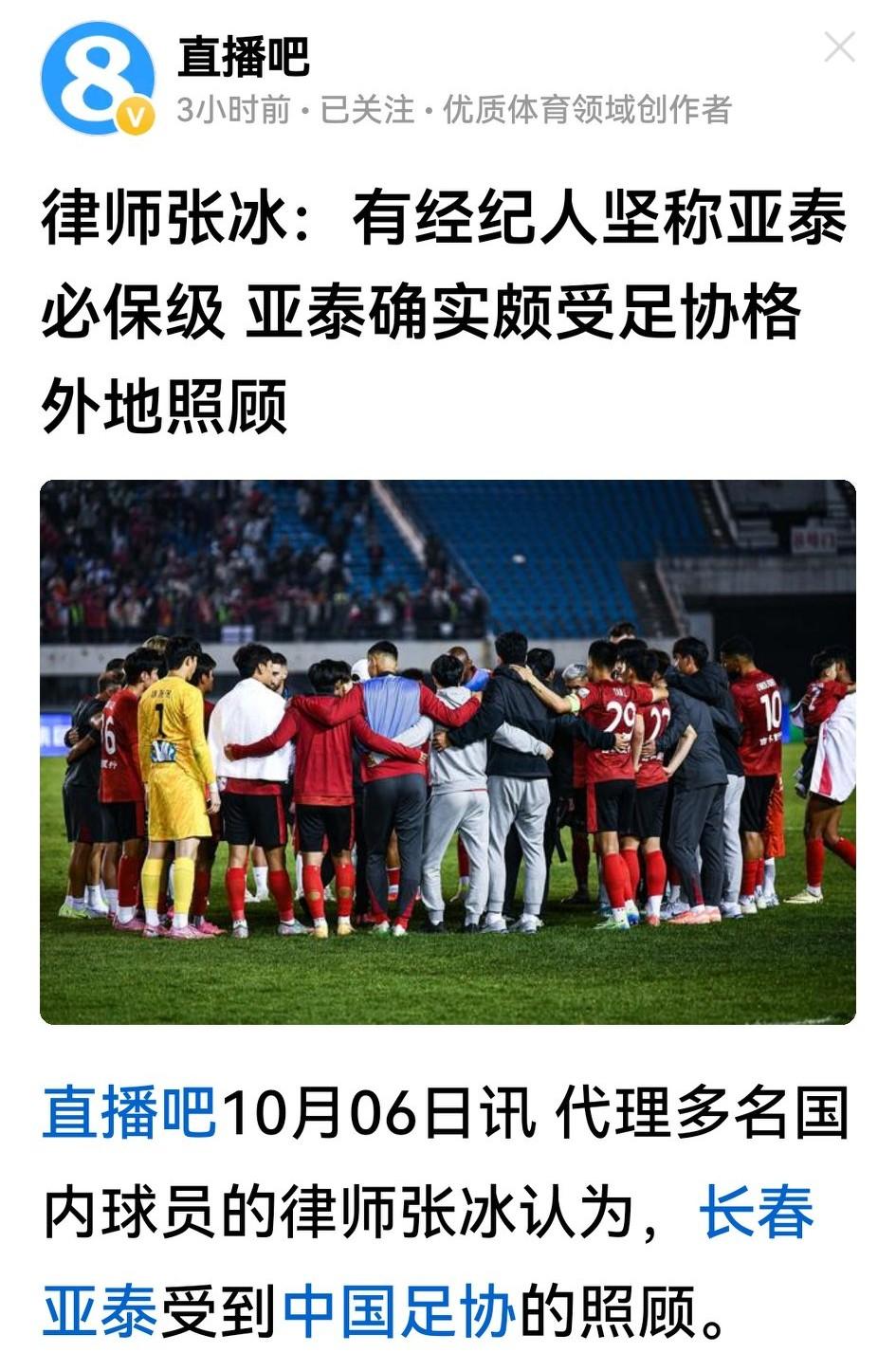 在中超保级大战如火如荼的关键时刻,在净化网络空间不断走向深入之际,律师张冰公然宣称“亚泰确实颇受格外地照顾”,“坚称亚泰必保级”,但他没有拿出任何证据,却把足协往火山口推。 当下中超保级就是4争2,长春亚泰还在垫底,他这一说如果是真的,保级就变成了3选1,足协将安排海牛、深圳、客家的2队降级,让中超收官完全丧失公信力。 张冰作为法律工作者,将“确实”“颇”“格外”“照顾”亚泰等严厉的措辞用到足协身上又没有证据,相当于恶意传播负面信息,足协可不可以起诉他呢?