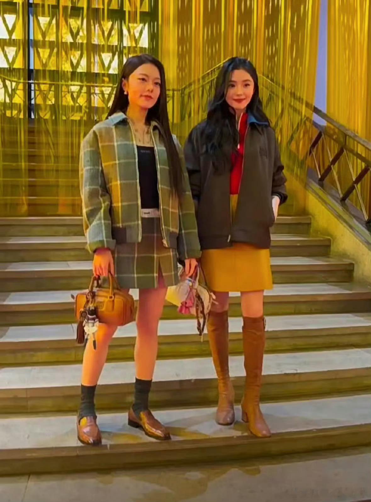 刘浩存赵今麦同框手指比心了MiuMiu巴黎时装周