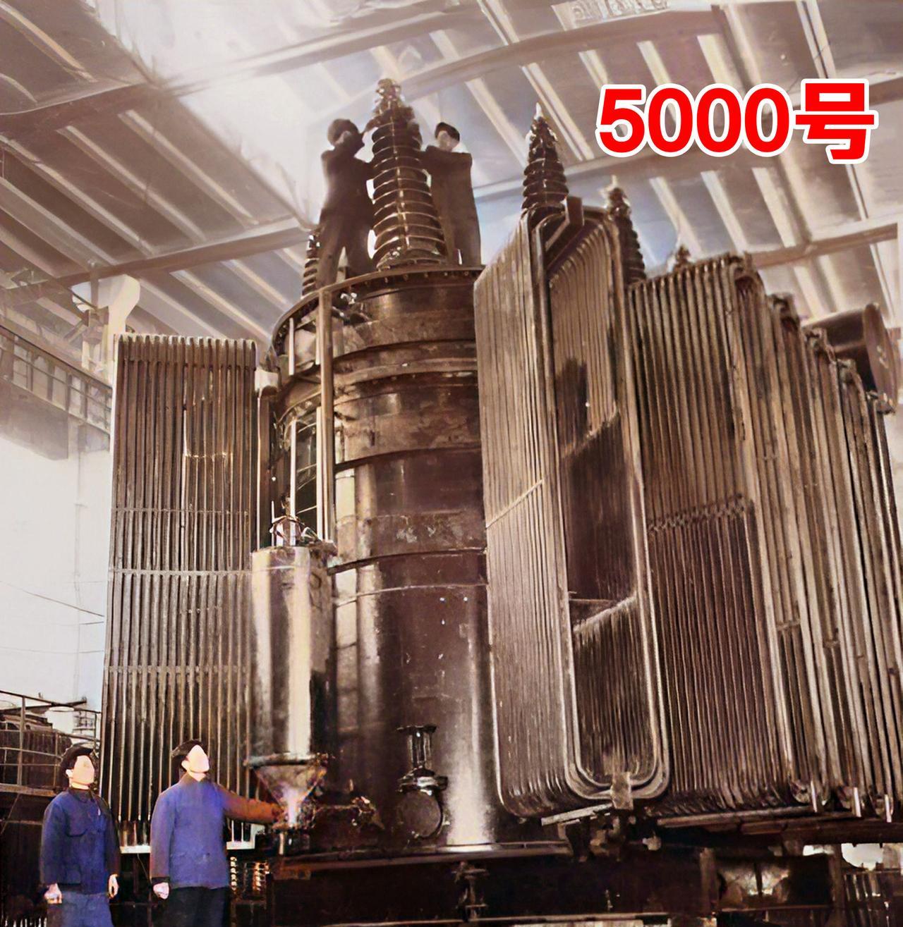 1957年2月16日,沈阳一家工厂的车间里,突然响起了欢呼声:“成功了!”人们奔走相告,我国自己设计制造的第一台巨型电力变压器“五千号”试制成功啦! 在沈阳变压器厂的车间里,这台变压器,个头真是太大了!高度就有7米多,重达152吨,看上去就像一个巨无霸!工人站在跟前显得很渺小。 新中国成立后,随着生产恢复和经济发展,对大型输变电设备需求日益紧迫。当时只能生产铁道配件和小型变压器的沈阳变压器厂,接受了一项重要任务:制造中国第一台5000千伏安大型变压器。 当时,前苏联的技术专家听说后,嘲笑道:就你们那几间破厂房、烂机床,想造5000?真是痴心妄想! 研发制造如此大的变压器,的确没有先例。沈变的技术员们心里憋着一口气:我们就是要把它造出来,让那些外国人看看咱中国人到底有几斤几两! 技术员们废寝忘食,刻苦攻关。两年后,他们成功研制出了代表当时最高生产水平的5000千伏安大型变压器!挺起了中国制造的脊梁。这个激动人心的成就,足以载入史册!#老照片#