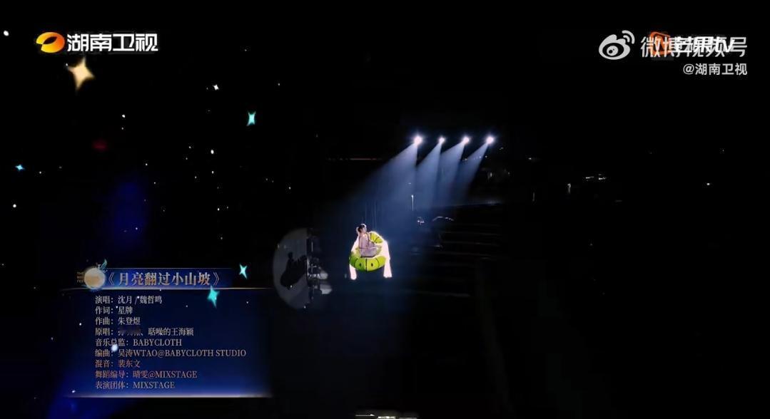 沈月“空降”湖南卫视中秋夜:歌声里藏着翻山越海的思念 湖南卫视中秋之夜一到沈月的环节,直接看愣了!《月亮翻过小山坡》的旋律刚起,她就坐着漂浮汽艇慢慢从空中飞向舞台,身后是满屏璀璨的星河,像从童话里来的一样。 她开口唱歌时,把“翻过山、越过海也要回家团圆”的心意全唱进歌里,每一句都软乎乎地戳在心上,仿佛在对着屏幕前的家人轻声说“我想你啦”,看得人眼眶发烫,瞬间就跟着想起自己牵挂的人。