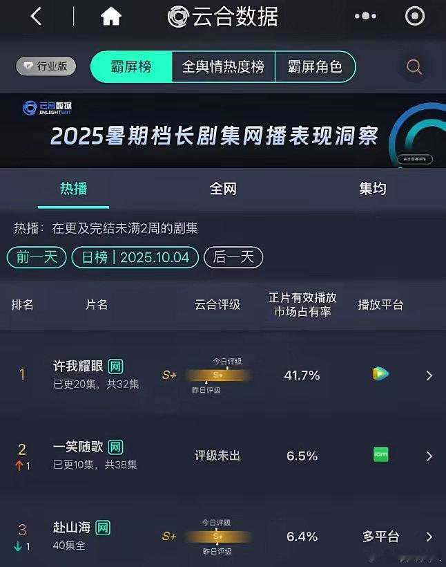 赵露思之前最出圈的一番作品应该是《传闻中的陈芊芊》,但算不上大爆剧,她出道后演了十几部女主,8部一番女主,但是一直缺少一部一番大爆剧,这次《许我耀眼》弥补了她没有大爆剧的不足,这部剧云合已经超40%,而且目前还是上升趋势,不过今年的云合占比稍微有点水,以前云合40%集均能达到一亿,但是今年云合占比破40%的三部剧,集均都没能达到5000万,但是这部剧能算得上赵露思个人最爆的一番剧。