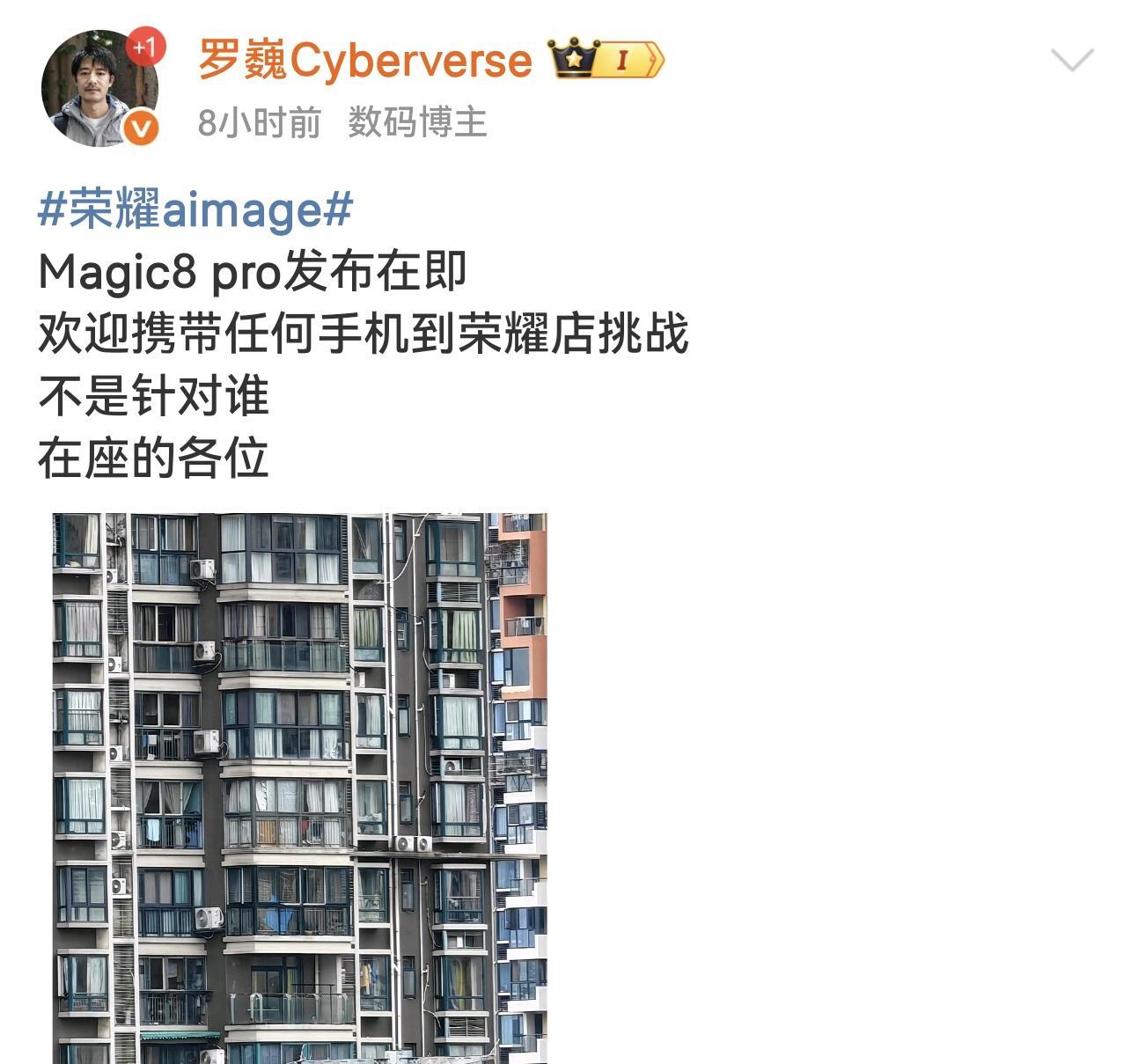 不抬杠,只对比,来荣耀实体店挑战! 这次荣耀Magic8对摄像应该是非常非常的满意,罗巍总已经放话了,欢迎各路朋友们携带任何最新款手机来荣耀体验店对比拍摄