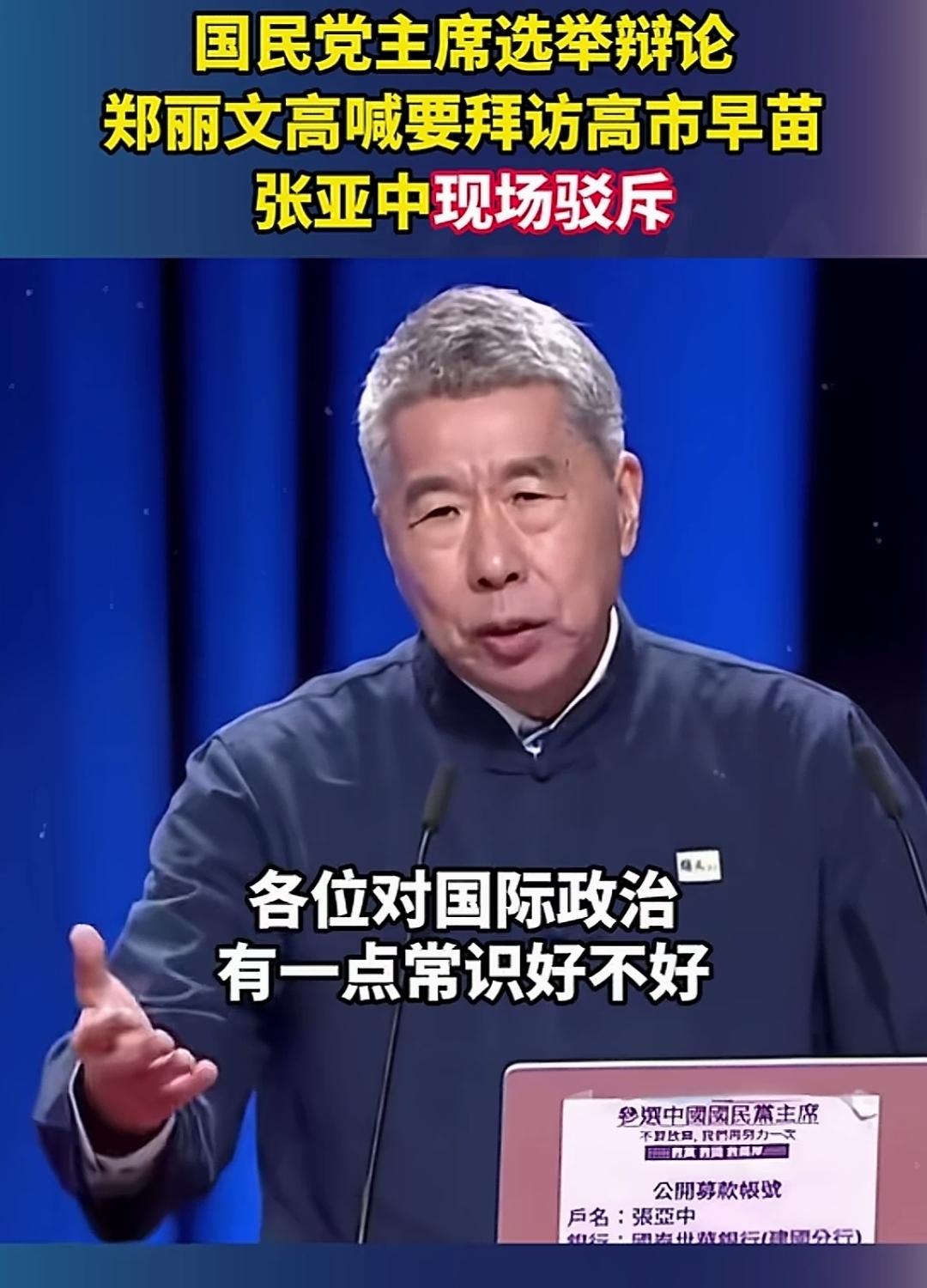 说实话,国民党主席候选人的国际政治常识真不如大陆的普通网友的素养高。 国民党主席不是这么干的。 张亚中最后这句话说得对也不对, 说他说得对,是国民党主席居然是一群没有国际政治常识的人在竞选。 说他说得不对,是因为他在国民党50年了,都还没有看清楚国民党的本质,实际上只有这种人才能当上国民党的主席,他这样的理想主义者是没有机会的。 我们大陆网友都对高市早苗当选表示欢迎,国民党那些人他们要去就去嘛,多大点事。 点右上角关注我,我们一起去看这个魔幻的世界