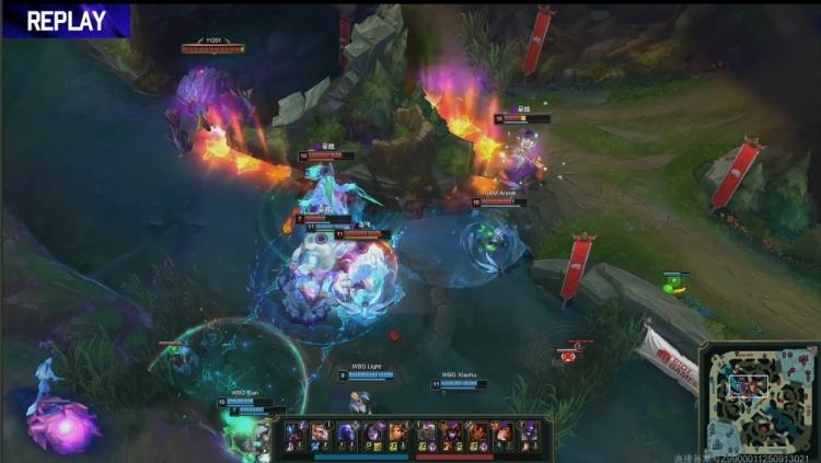 [10:58]野区团战,小天奇亚娜开大推Artemis女枪,Light卡莎拿到人头,Levi龙女没伤害闪现下龙坑逃生,WBG经济领先2k。