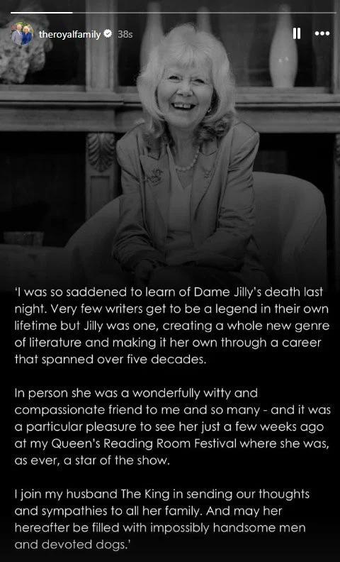 卡米拉王后含泪追忆传奇作家挚友,临终愿望太戳心…… “愿她的天堂里,挤满了英俊男子,有忠犬相伴。”——谁能想到,这句充满浪漫与诗意的话语,竟出自英国王后卡米拉之口? 近日,英国王室官方Instagram账号发布了一则令人动容的声明,卡米拉王后为她刚刚离世的挚友、传奇作家吉莉·库珀献上了深情告别。 这份罕见的私人化悼念,瞬间引爆全球媒体关注! 当地时间10月5日(周日),以《骑手》、《对手》等作品风靡文坛半个世纪的吉莉·库珀因意外摔倒不幸离世,享年88岁。 消息传出,整个英国文艺界为之震动。 而最令人意外的,是来自白金汉宫的深情告白。 卡米拉王后在声明中开门见山地写道:“昨晚得知吉莉去世,我深感悲伤。” 字里行间透露出真挚的友情,完全超越了王室成员通常保持的克制形象。 让人动容的是,这位王后对挚友文学成就的精准评价:“极少有作家能在有生之年成为传奇,但吉莉做到了。她开创了全新的文学流派,并用超过五十年的职业生涯将其变为自己的王国。” 在公众印象中,王室成员与畅销书作家的私交往往笼罩着神秘面纱。 但卡米拉的声明却罕见地揭开了这层面纱,展现了两人数十年的深厚情谊。 “私下里,她对我和其他许多朋友而言,都是个风趣且富有同情心的人。” 卡米拉特别提到,几周前在自己的“王后阅读室节日”活动上,吉莉依然是“全场的明星”。 这份声明最打动人心的部分,莫过于结尾那句既私人又充满文学色彩的祝福:“我与国王丈夫一同向她的所有家人致以慰问和同情。愿她的来世,满是英俊男子追求,有忠犬相伴。” 这分明是吉莉小说中才会出现的台词! 卡米拉巧妙借用好友作品中的经典元素,完成了这场最具个人特色的告别。 对于不熟悉英国文学的读者而言,吉莉·库珀这个名字或许陌生,但她在英国文化界的地位却无可撼动。 其经纪人费莉西蒂·布朗特称:“能与这样一位五十多年来定义文化、写作和对话的女性共事,是我职业生涯的殊荣。” 令人惊讶的是,那些被归类为“情色小说”的作品,却经受了时间的考验。 布朗特指出:“吉莉以其敏锐和洞察力书写了一切——阶级、性、婚姻、竞争、悲伤和生育能力。” 这正是吉莉作品的独特魅力:在看似轻松的故事背后,是对社会现象的深刻剖析。 吉莉的离世不仅是英国文坛的损失,更让全球读者失去了一位能够带来欢笑与思考的作家。 她的子女费利克斯和艾米丽通过媒体表示:“母亲是我们所有人生中的闪耀光芒。她对所有家人和朋友的爱无边无际。” 从王室到平民,从文学界到娱乐界,吉莉·库珀用她的笔触动了无数人的心灵。 而卡米拉王后的这份声明,或许是对这位作家最完美的告别——既有王室的庄重,又不失好友间的亲密与理解。 在这个仪式感往往流于形式的时代,卡米拉王后用真诚和个性打破了常规。 她不仅悼念了一位作家,更致敬了一段跨越阶层的友谊,展现了现代王室的温度与人性化的一面。 吉莉·库珀曾经说过:“生活就是要把平凡变成非凡。” 而卡米拉的这份声明,恰恰让一场平凡的告别变成了非凡的致敬。 或许,这就是友谊最美的样子。 即使天人永隔,也要用你最爱的语言,与你好好说再见。 (本文由“全球奇趣娱乐八卦”原创,欢迎关注,带你一起涨知识!)