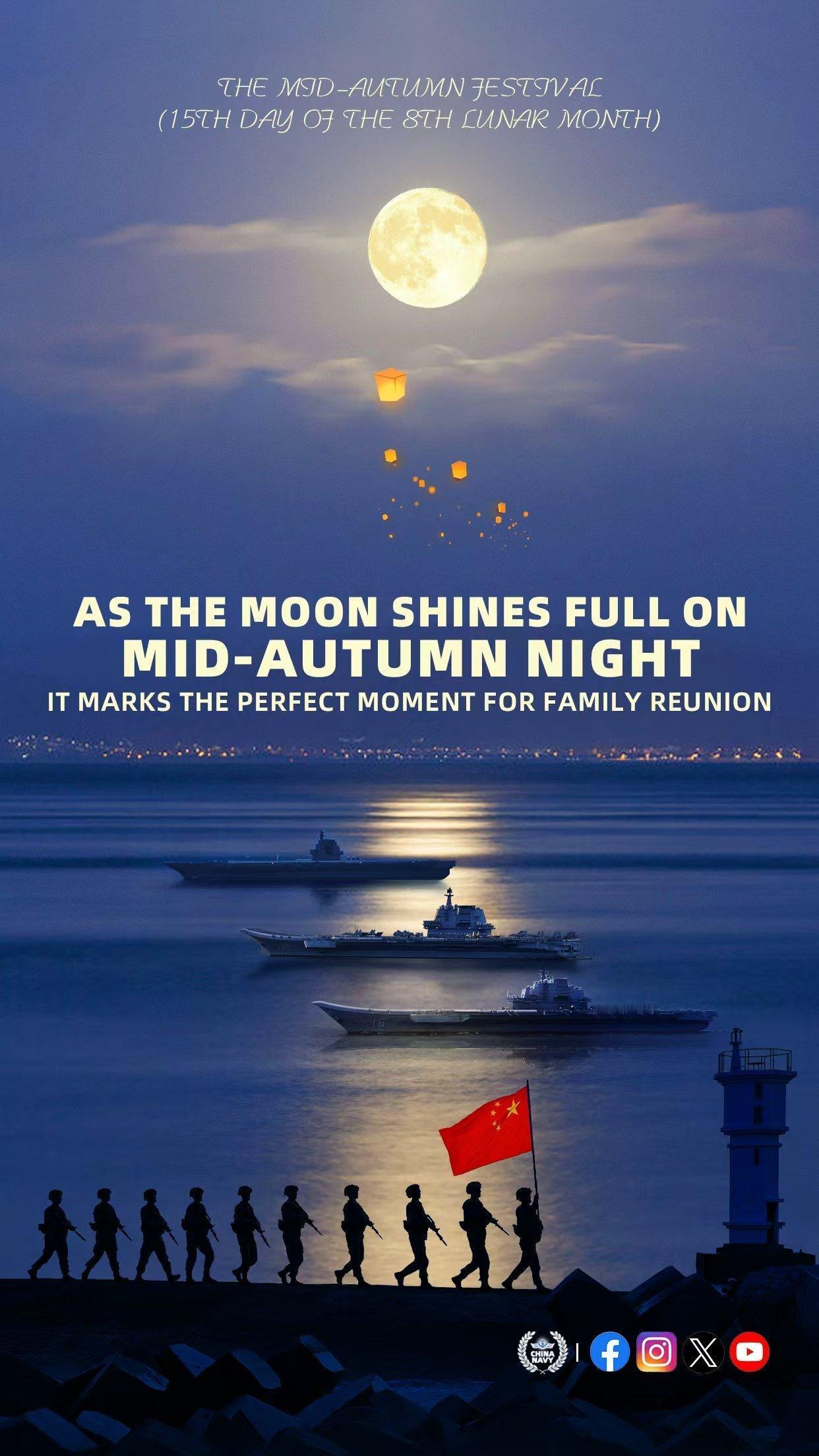 这是中国海军在X上发布的三航母中秋节海报! 并配了下面文字: 当月亮在海面上升起时,我们都在同一片天空下。 远行的水手们,正在守护着成千上万家庭的团圆。 这就是中式浪漫,西方是根本体会不到的。 啥也不说了,此生无悔入华夏,来世愿在种花家!