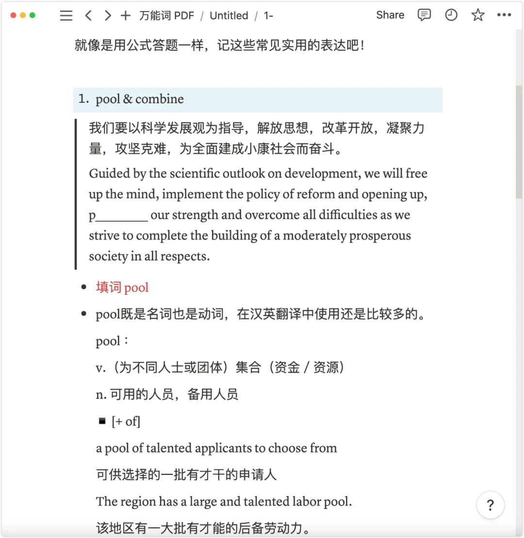 📒 pool既是名词也是动词,在汉英翻译中使用还是比较多的。