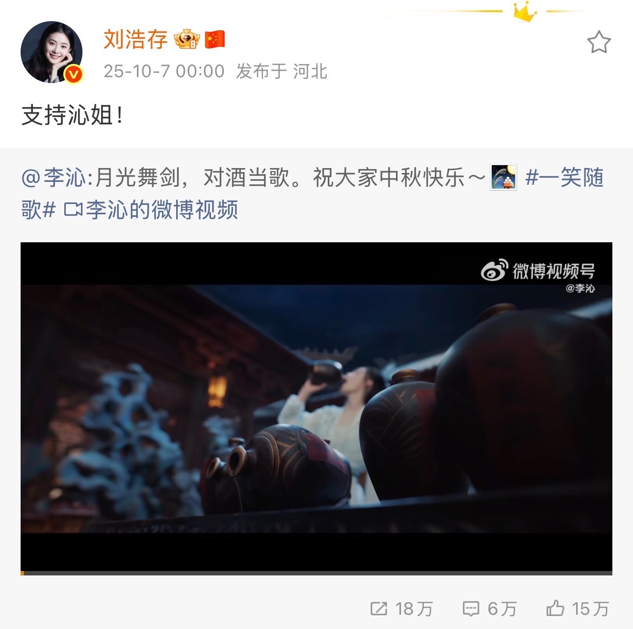 刘浩存转发支持李沁新剧刘浩存宣传李沁新剧刘浩存宣传小能手上线支持李沁新剧咯[