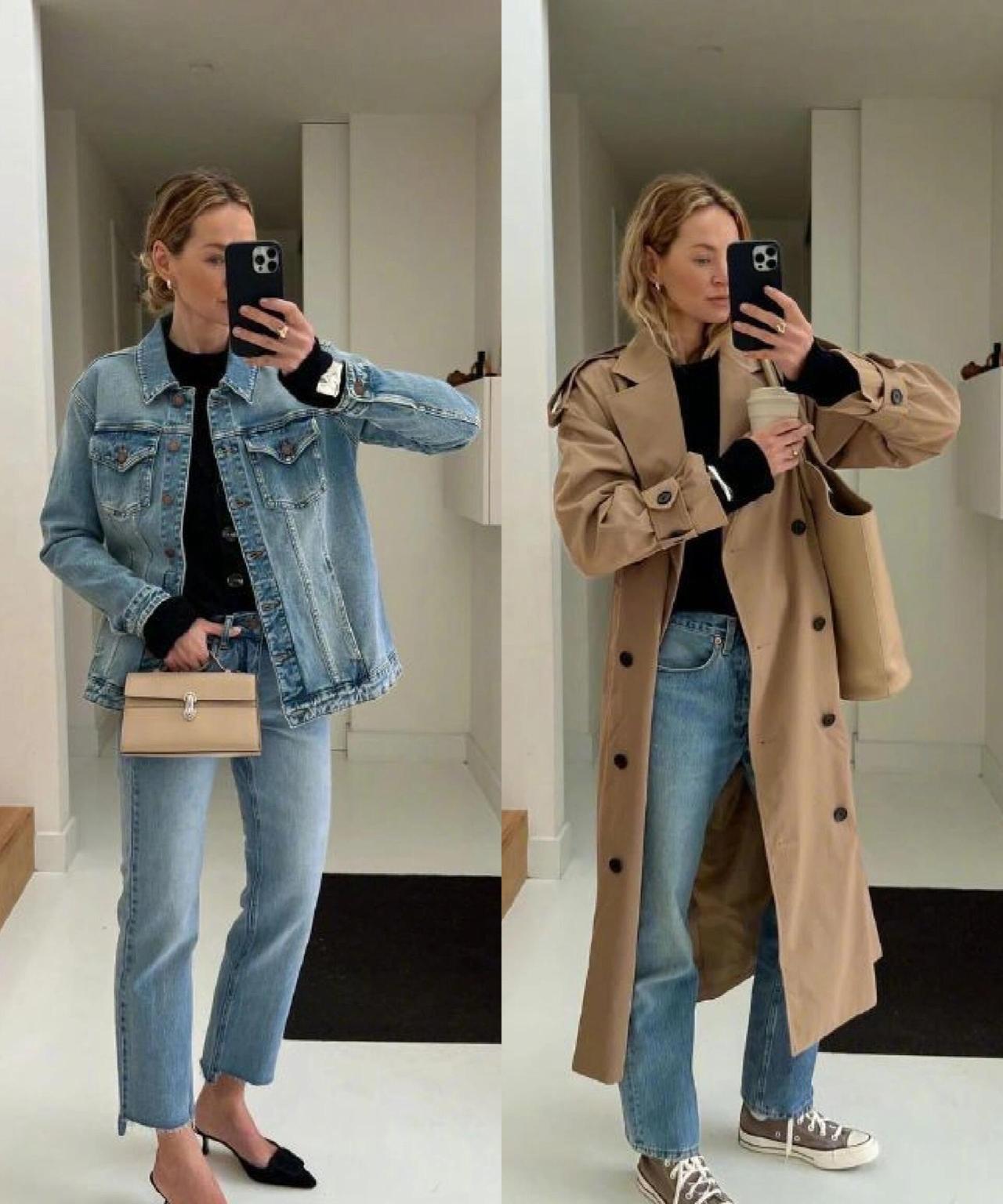 简约穿衣也能够收获时尚感,根据博主不出错! 对大多数普通人来说,更偏爱简约低调的穿搭,黑白灰和牛仔蓝就构成了日常出街的主色调。可以模仿博主通过同色系,再加上不同明暗度的单品丰富层次感,简约低调又高级。 也可以加入混搭元素,牛仔裤配尖头的高跟鞋,优雅又减龄时尚。
