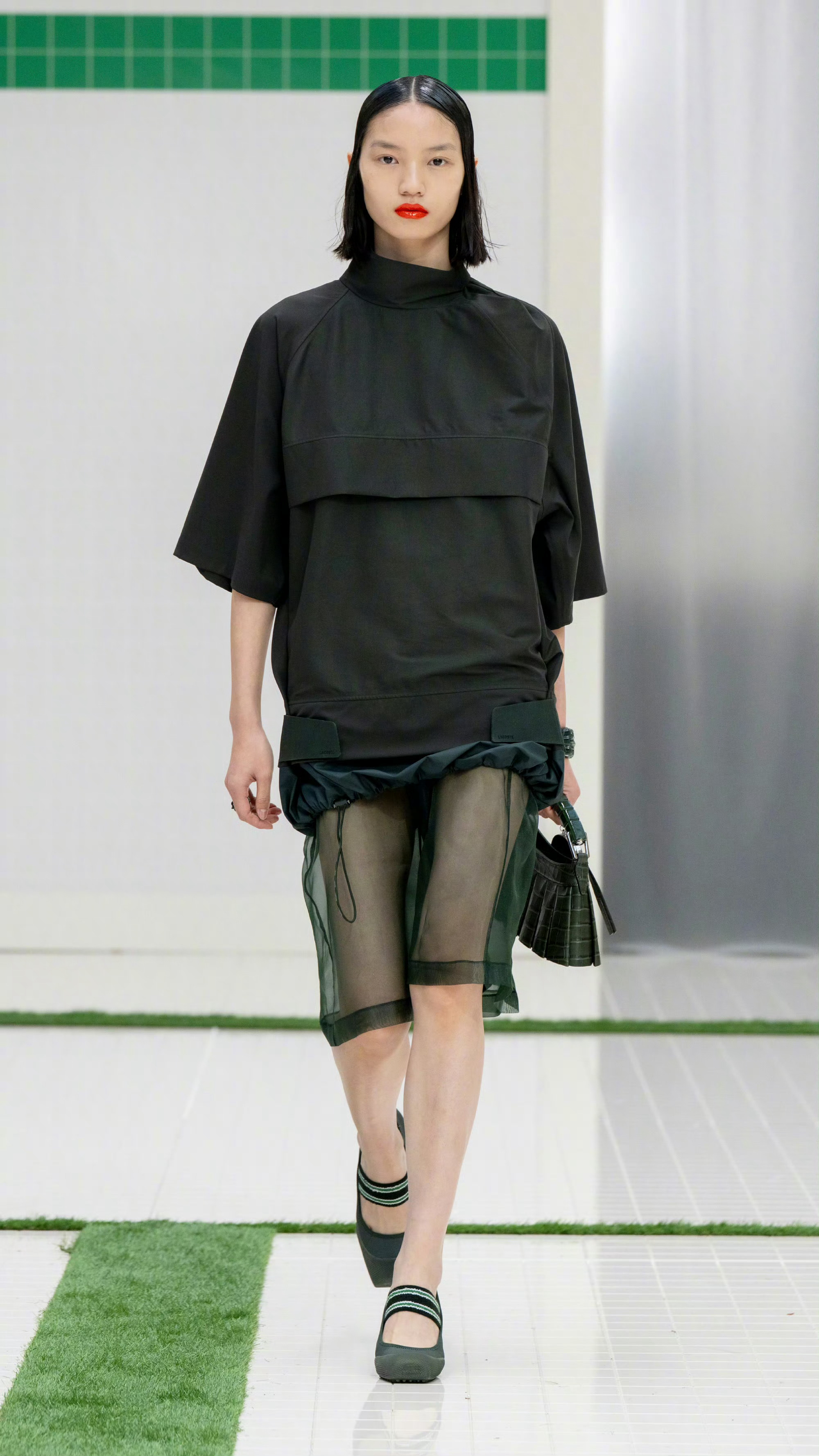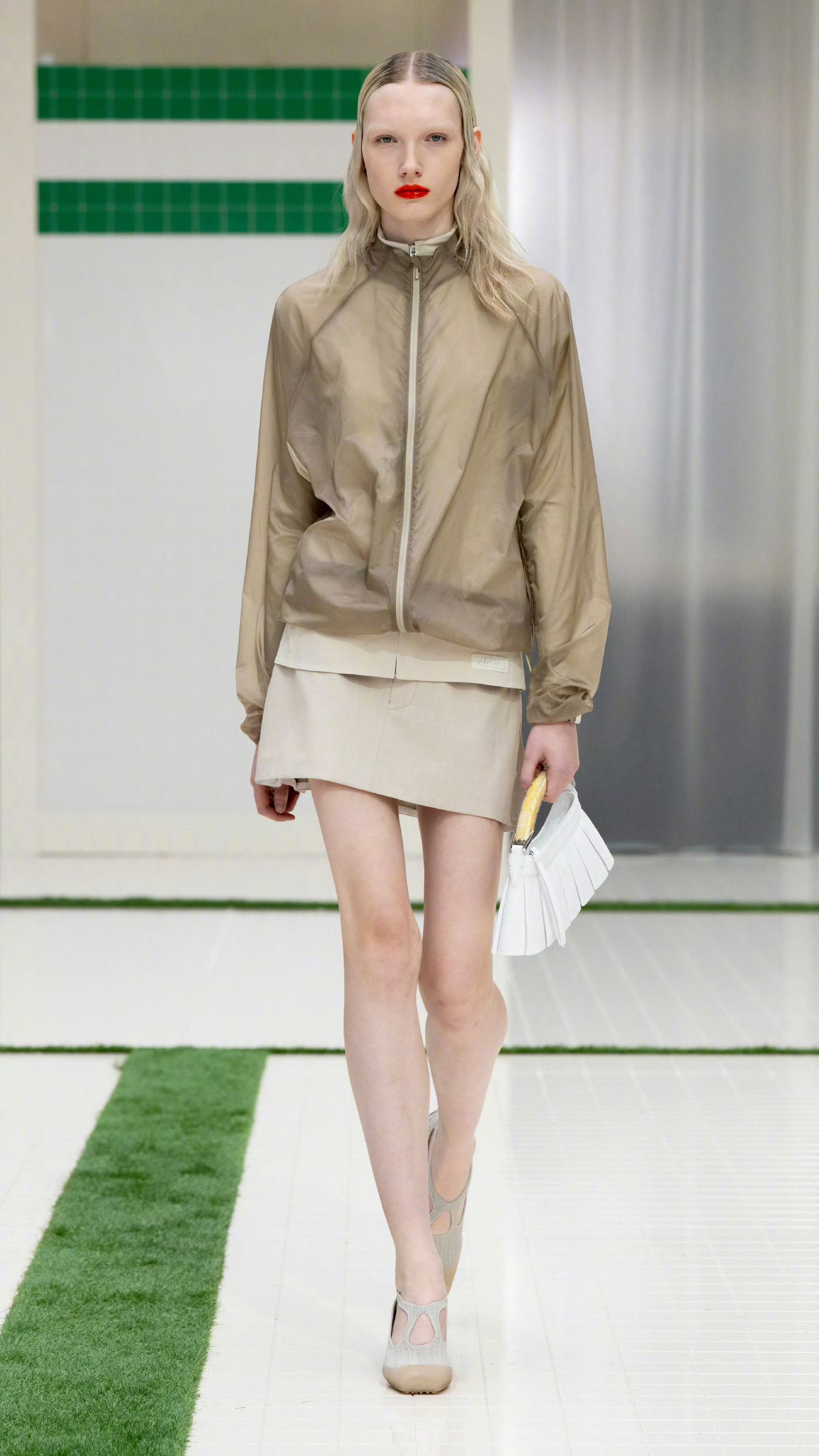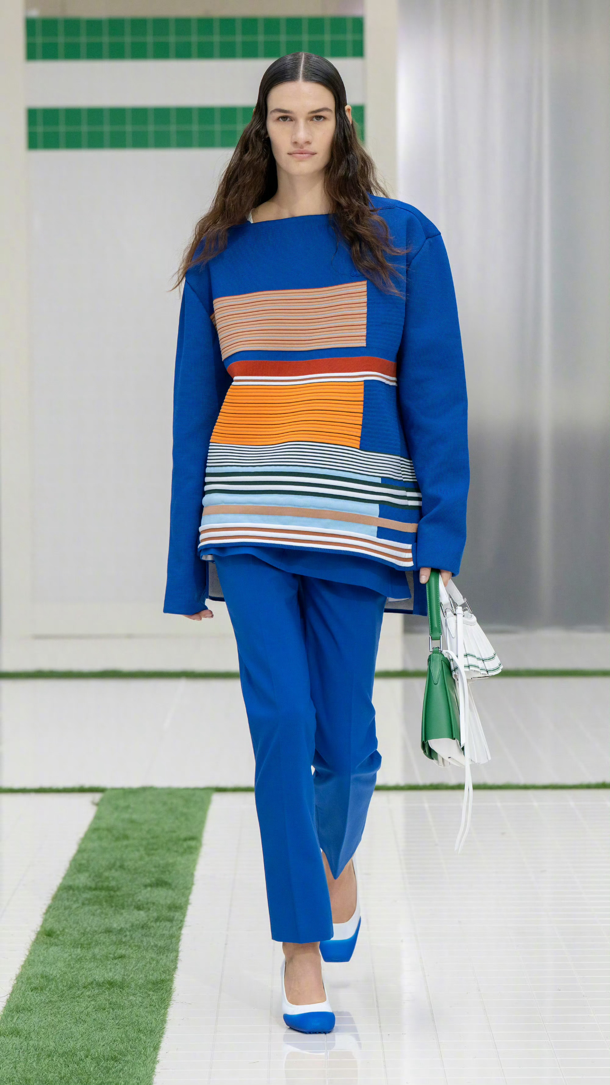 本季秀场舞台重塑为“更衣室”,通过瓷砖铺陈的墙面重现了 René Lacoste 等所有运动员所熟悉的“后台”氛围。 ​​​