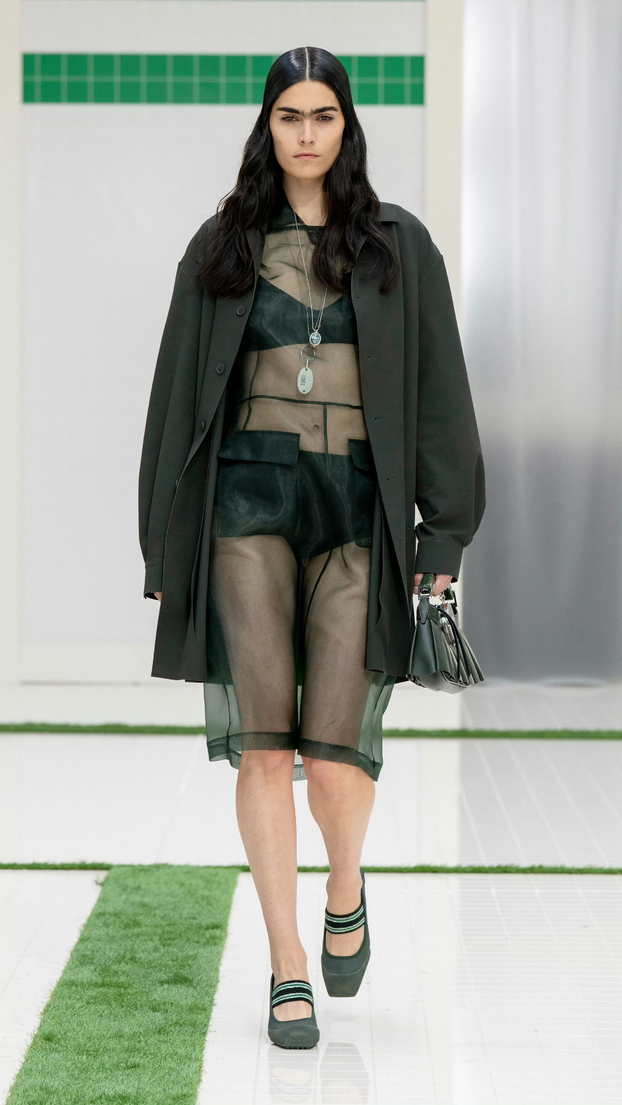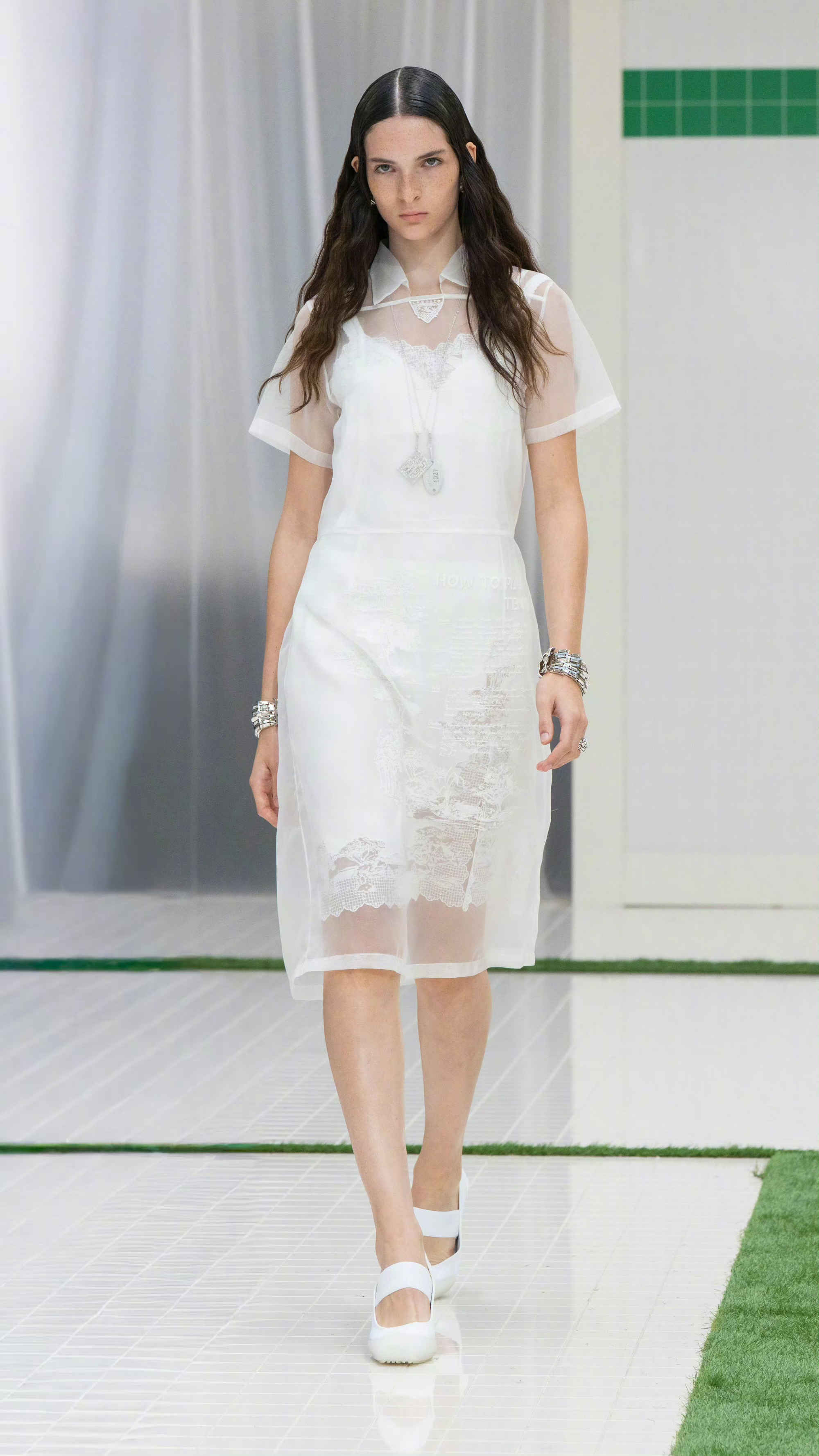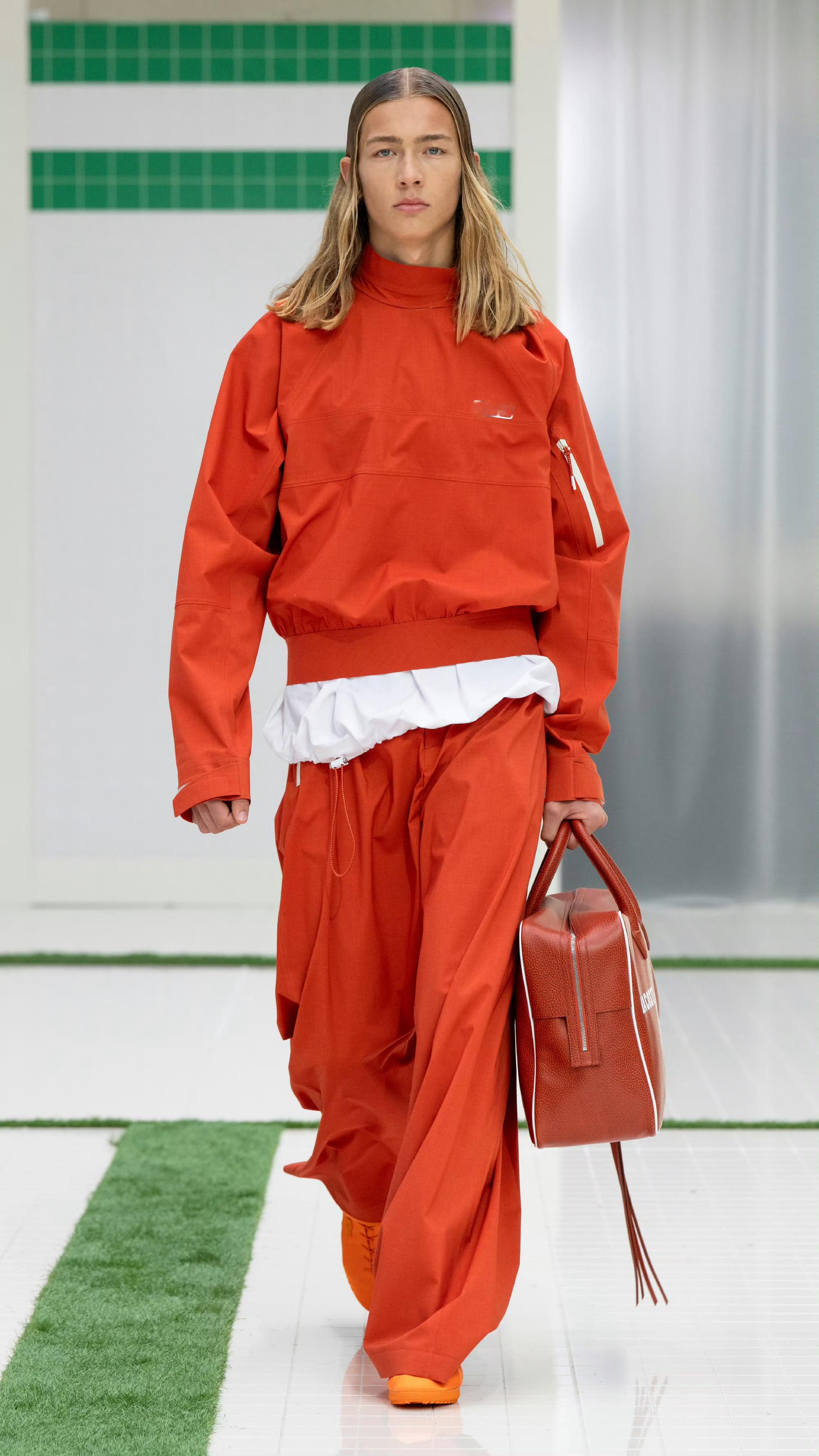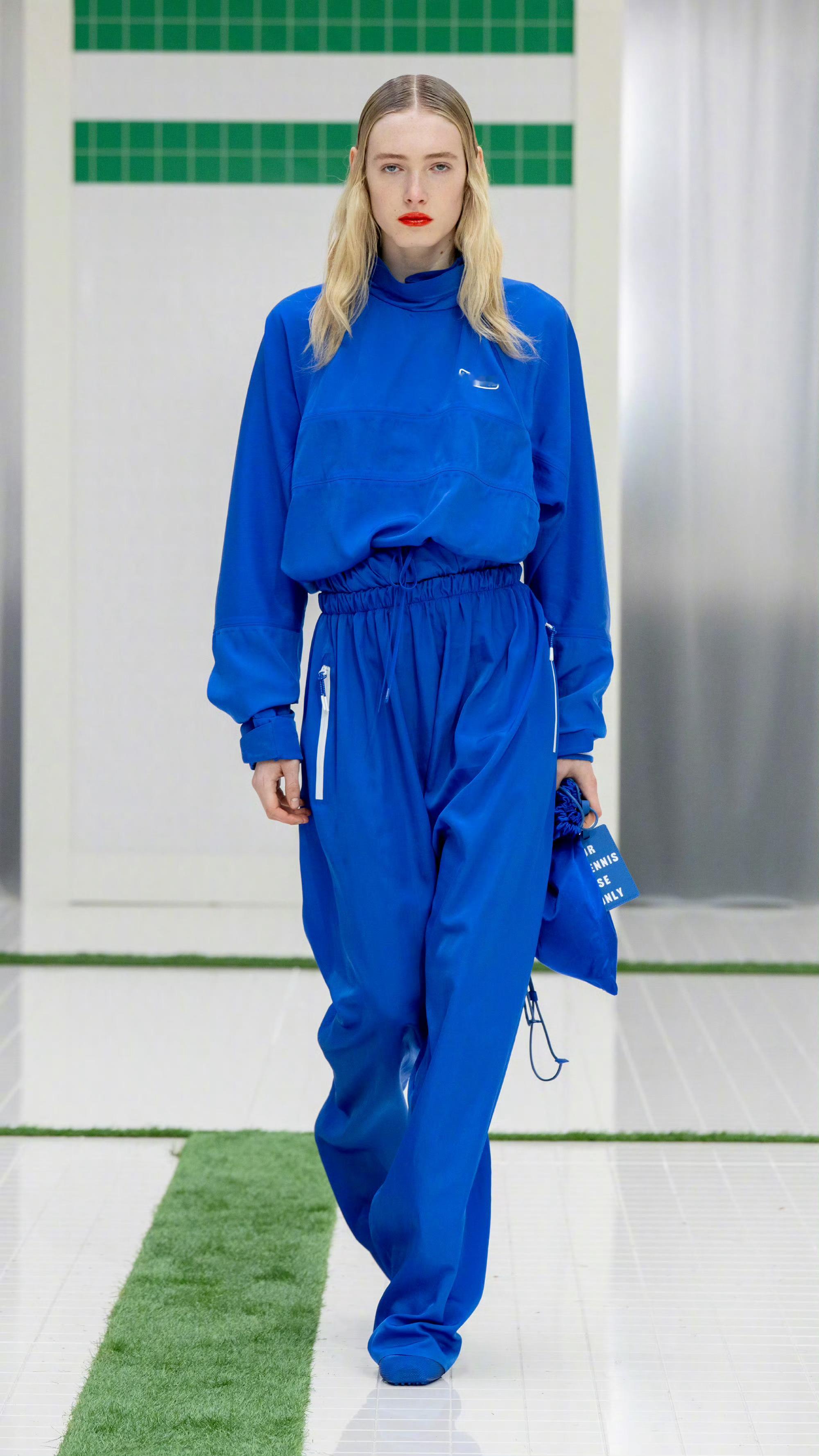 本季秀场舞台重塑为“更衣室”,通过瓷砖铺陈的墙面重现了 René Lacoste 等所有运动员所熟悉的“后台”氛围。 ​​​