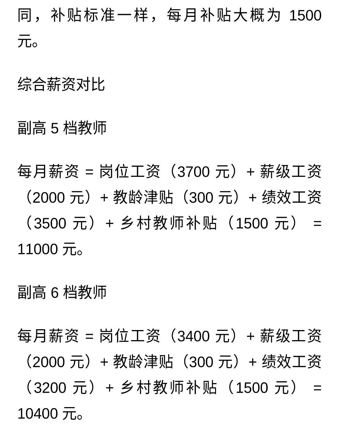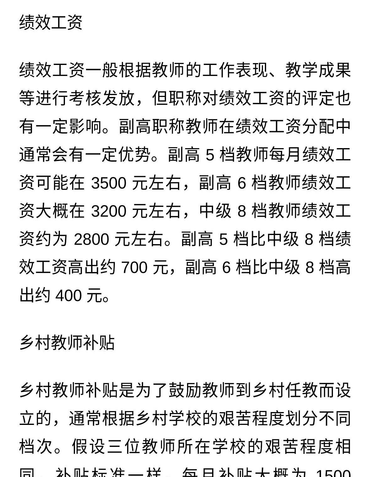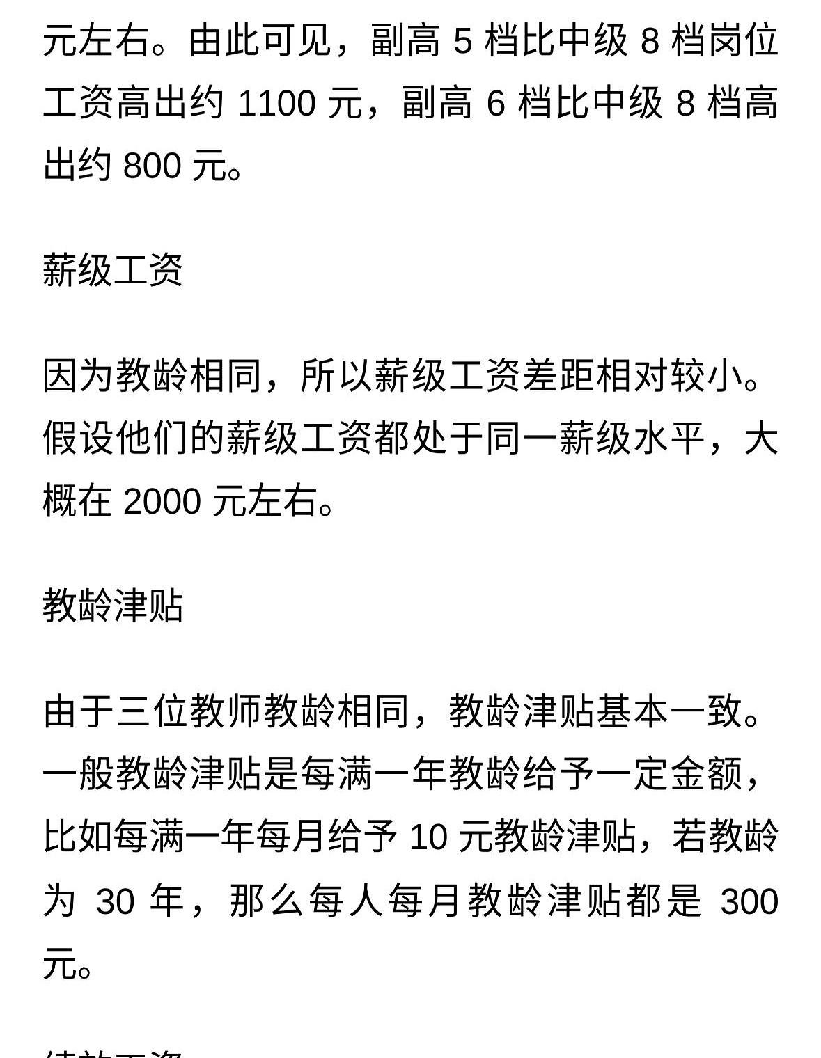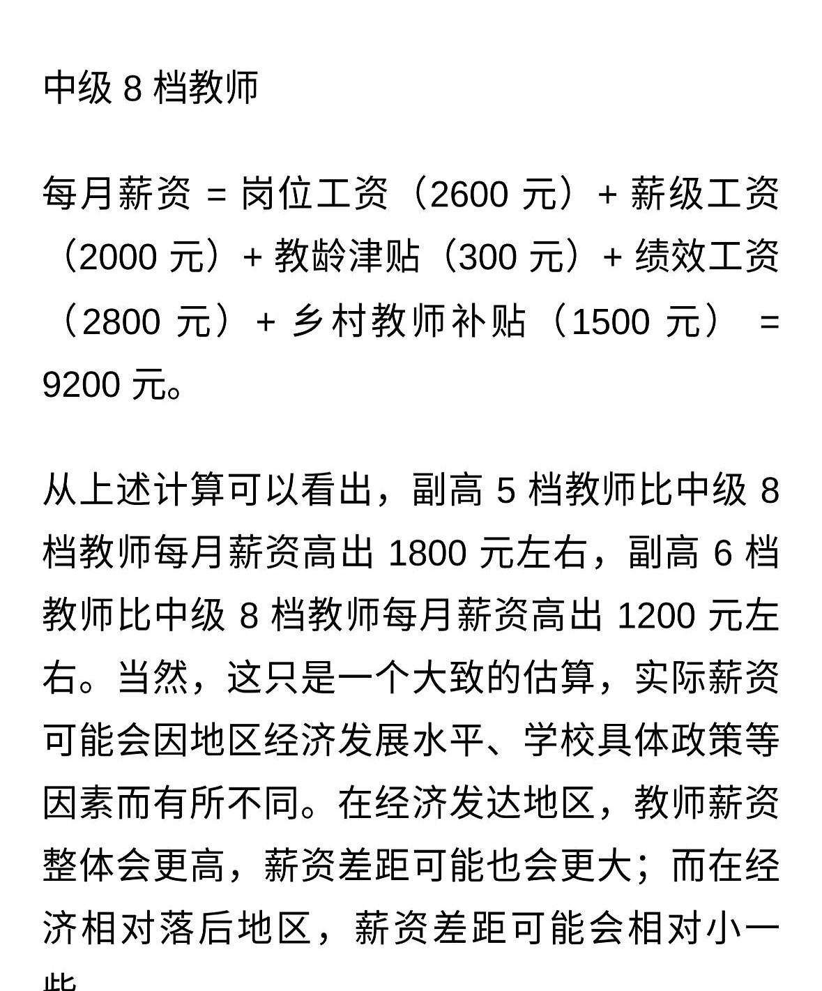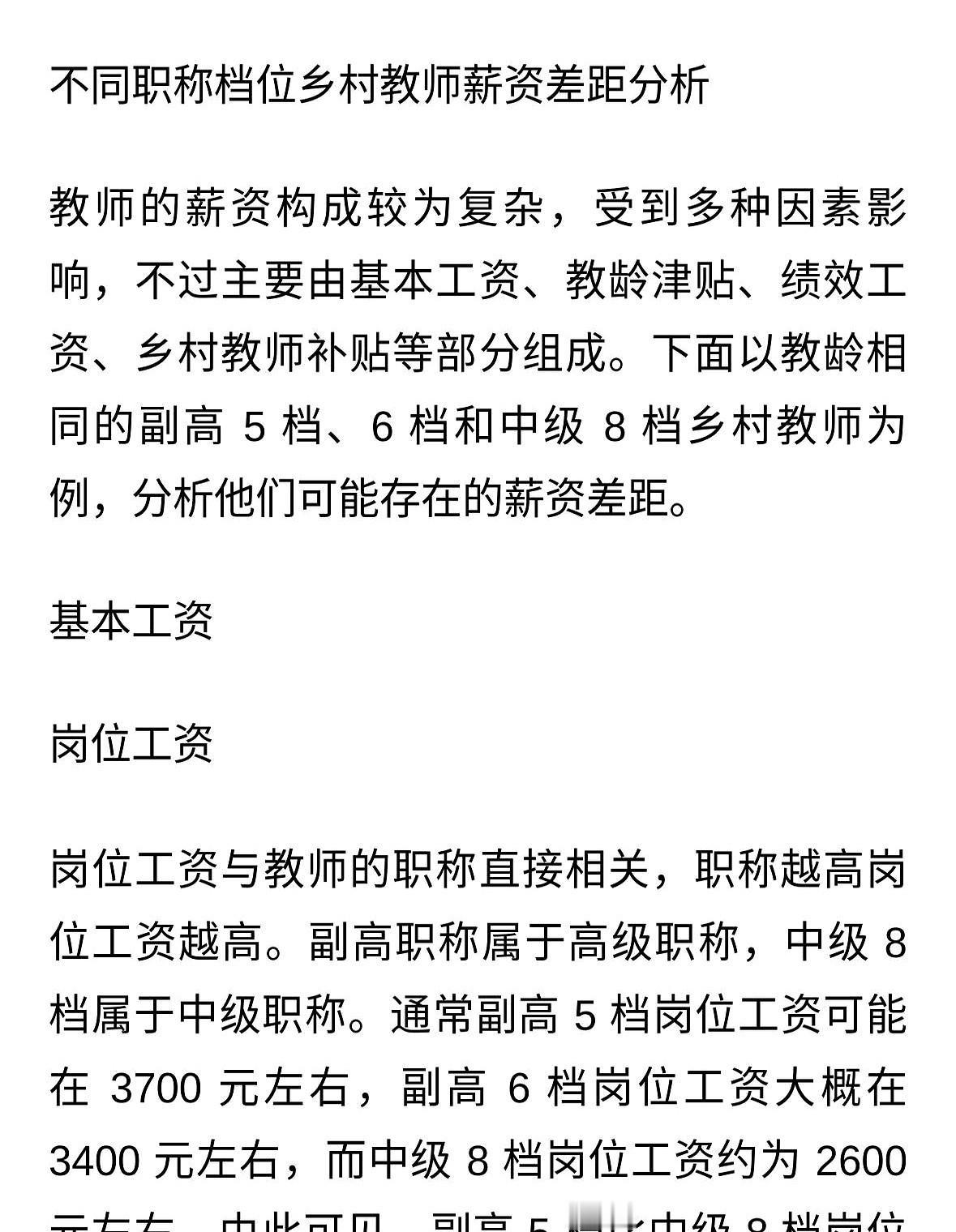 副高每月多拿1300元,职称卡住乡村老师脖子 省里2023年工资表写得清楚:副高5档6600元,中级8档5300元,差的就是1300元。 这1300元不是小数目,够给老人买一整年的降压药。 差距来自职称,不是教龄,也不是课时。 评不上副高,干三十年也涨不上去。 名额少、论文难、评审远,乡村老师白天上课,晚上改作业,还得挤时间写材料,谁不想多挣点? 教育部文件说基本工资差800到1500元,地方财政再补点,差距就更大。 退休金也跟着职称走,副高退下来每月又多几百。 想留人在村小,就得让职称评审别只盯着论文,多看看课堂、多给乡村指标。 老师们安心,孩子才有未来。 别让职称墙挡住老师涨钱路,把名额送下乡,比喊口号实在。