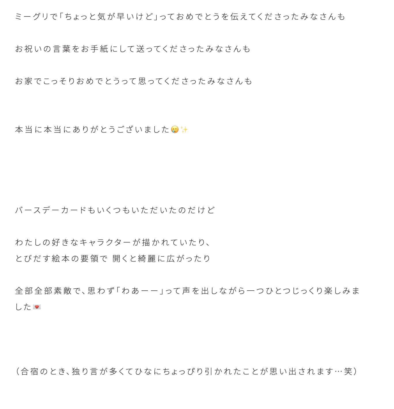 山川宇衣「ブログってなんて数えるんだろう、一個二個…?わたしはブログをみなさんへ向けた手紙だと思っているので、一通二通って数えることにしようかな。これで何通目!って数えるのも楽しくなりそう💭ということで今回は記念すべき一通目の個人ブログです💌ぜひ最後まで読んでくださるとうれしいです。」