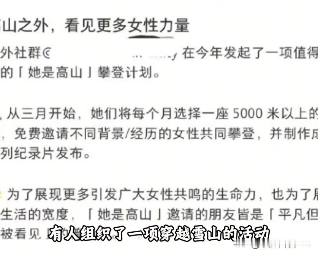 拿“全女团队登山”当流量噱头,一名女子差点命都搭进去了,还好被男生发现她才获救。 某平台上有人组织“全女登山队”挑战5000米雪山,说是要展现女性力量,结果一个女生半路失温快不行了,她那些“集美搭子”居然直接把人扔在山上,自己跑了!连个救援电话都没打,差点闹出生命危险。 要不是后来一个16岁的男生发现了她,还有两位路过的医生伸手帮忙,在晚一个小时这女生估计就交代在那了。事后“全女团队”发起者删动态装死,同行的人也集体隐身不表态。 登山这种又费体力又考常识的事,本来就该安全第一。现在倒好,“全女”成了某些人圈流量的幌子,觉得自己根本不需要男生,真要展现女性力量,先把基本的安全保障弄明白。整这些花里胡哨的,命没了,再“全女”也没人看了!