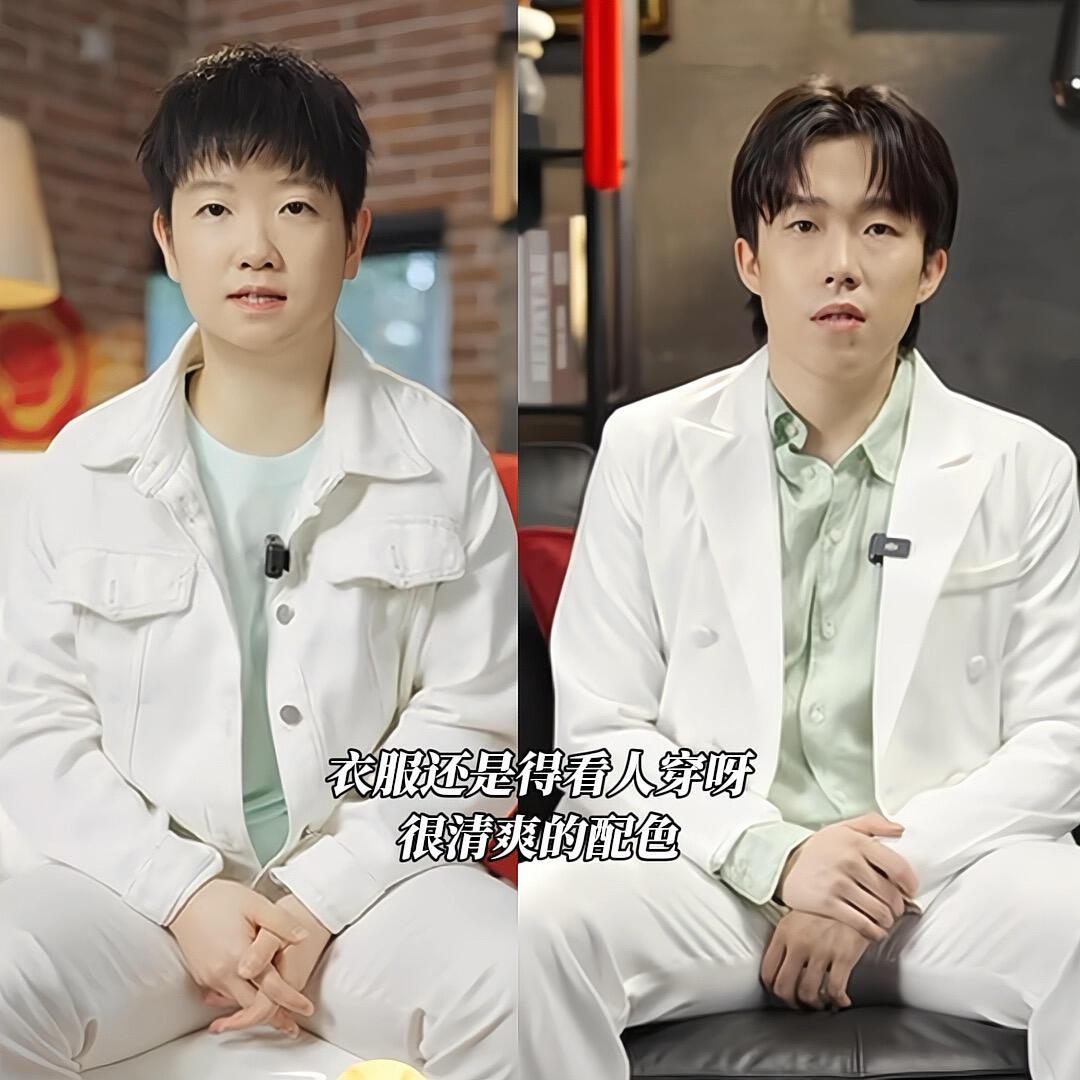清爽的衣服,还得干净的人穿,郎才女貌! 两个人“亲相见”的代言,太配了,两个人要说没有提前说穿啥,真的好难相信,衣服裤子都是纯白色! 大头那套真的乡里乡气的,衬衫扣子还扣错,但是莎莎那一套,自己弄的太板正了! 这一个好像是在郭和楠家送礼,顺便拍了,顺其自然拍摄的,没有任何准备拍的吗?