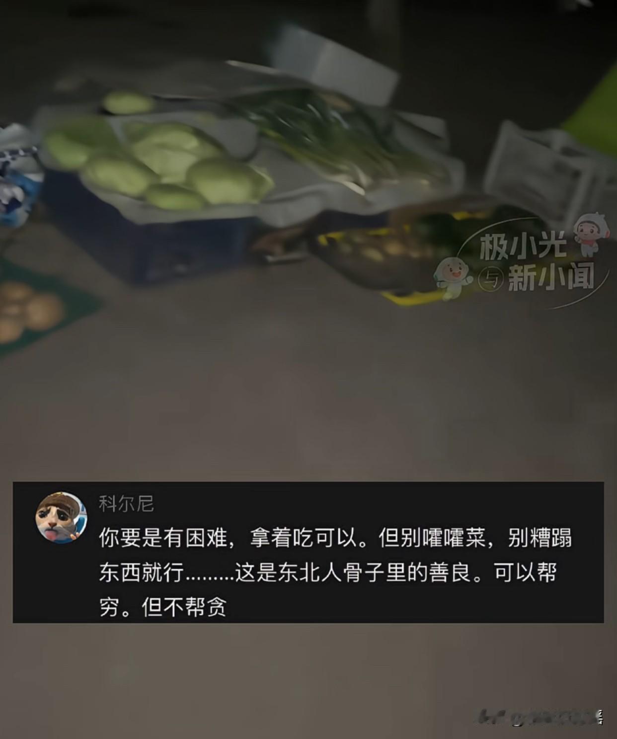 “帮急不帮贪!”黑龙江一小伙晚上出去溜达,路过市场时发现摊位老板都不在都回家了,可摊上的菜还整整齐齐摆在那儿。就把这一幕拍下视频:“这不怕被人拿吗?”说实话,我第一次看到也觉得挺意外的。 夜里,土豆白菜都好好摆在摊位上,像还在等着客人来挑。有人说在东北,你要是真遇到难处,拿点菜吃没事,但可不能糟蹋东西。我觉得这就是东北人最实在的地方。 这么个小菜市场,却让人想了很多。现在好多地方防盗窗越装越多,这里却用最朴素的方式展现了信任的力量。这种自觉形成的规矩,比什么都管用。 要我说啊,东北人的爽快里藏着大智慧。用善意建起的防线,比什么锁都牢靠。这件事最打动我的就是:当大家都互相信任,这个世界就会特别温暖。这份难得的信任,真的特别珍贵。