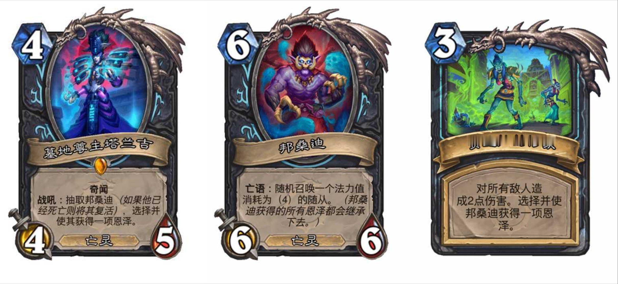 奇闻。战吼:抽取邦桑迪(如果他已经死亡则将其复活),选择并使其获得一项恩泽)