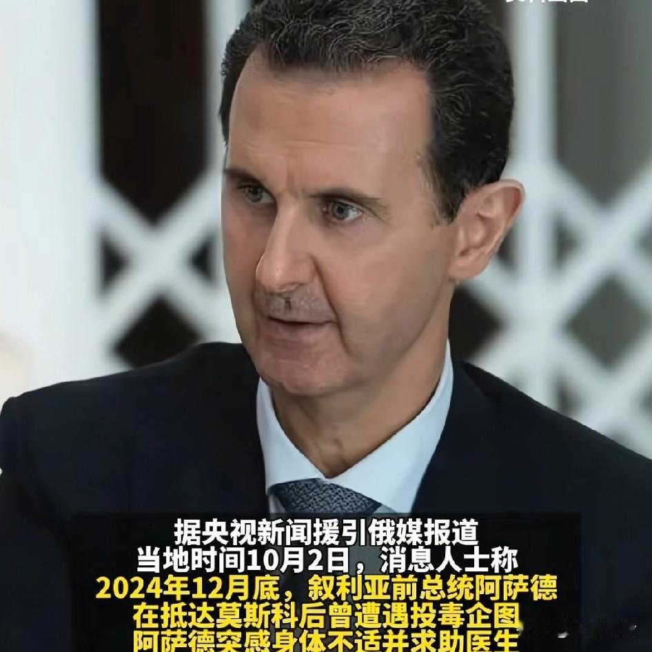 重磅消息!俄罗斯承认阿萨德被投毒!多家俄罗斯媒体在报道中承认,叙利亚前总统阿萨德