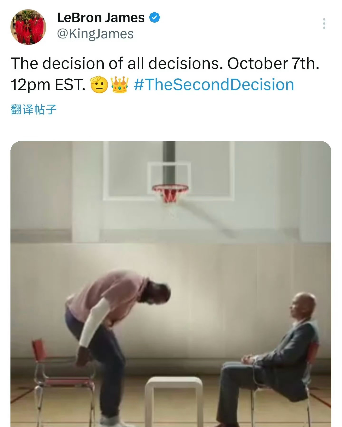 詹姆斯今天突然预告,即将宣布一项重大决定。外界瞬间联想到他可能在本赛季结束后退役,可这与他休赛期流露的再战一年的意愿相悖。但从其严肃的官方口吻看,这不是一个小事。