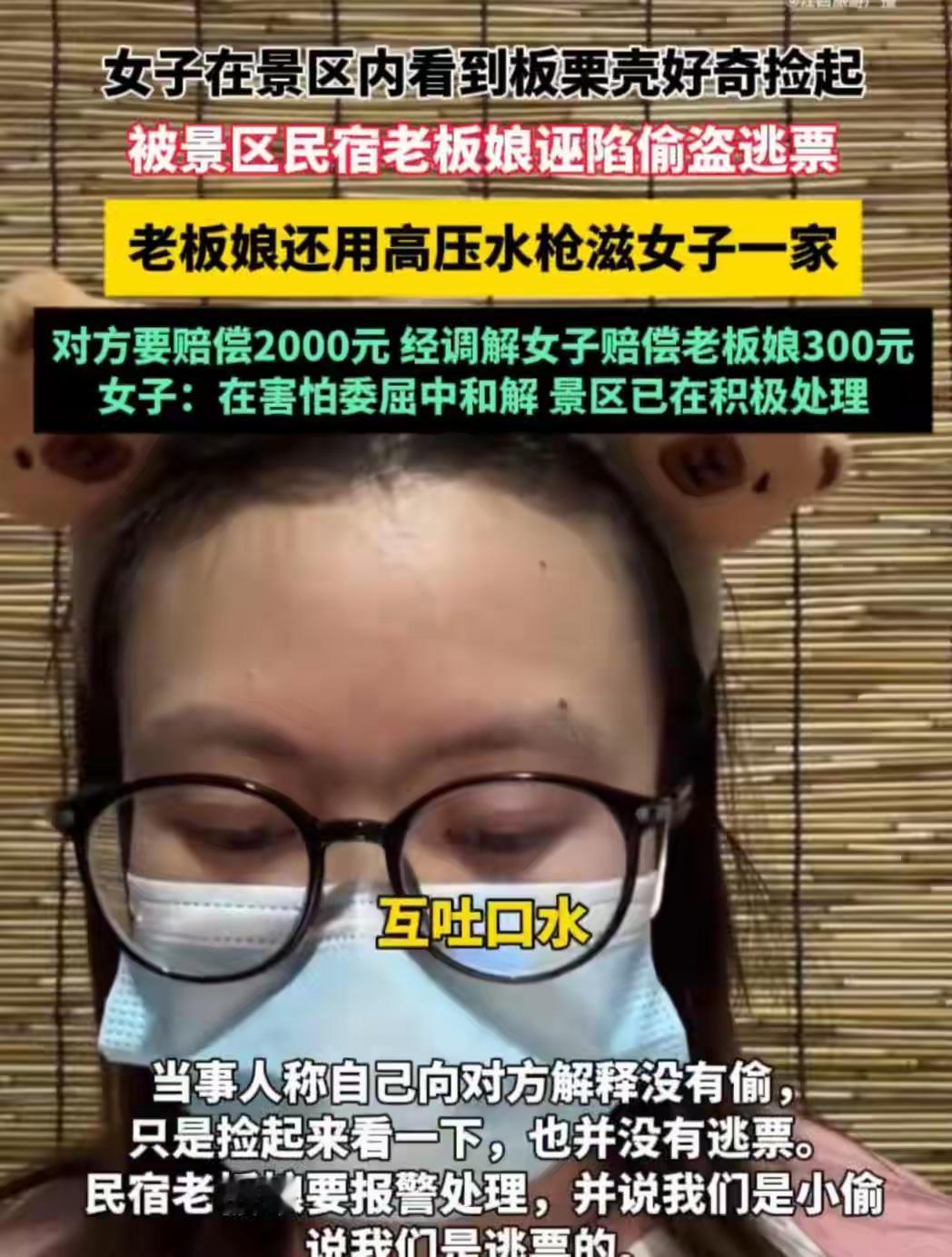 连云港民宿老板诬陷游客偷他家板栗一事,景区并无过错。 早在2024年秋季以及2025年9月29日,景区公众号便就邀游客前往花果山,不仅能欣赏花果山秋日美景,还可随手捡拾地上圆圆的板栗。 秋日邂逅野板栗,不仅是视觉的享受,更是舌尖的美味,在寻觅过程中更有别样的欣喜。 当民宿老板诬陷游客偷板栗、逃票、怀孕老板娘见红倒地之事在网络上发酵,花果山景区立刻澄清:游客既未偷板栗,也未逃票,这对游客来说,无疑是极大的慰藉。 至于怀孕老板娘有没有见红,医院一查便知。 这家民宿早在今年五一,就因私自取消游客两天的订单而被索赔。 一个地方的好坏,并非由一人的行为决定,而是大众评判的结果。 最新消息显示,游客已删除与民宿老板发生纠纷的视频。 景区回应称,双方已达成和解,这场风波就此平息。 和解说明游客拿回了,赔偿怀孕民宿老板娘的300元营养费,这是很值得欣慰的事情。 如今,不是谁耍无赖谁就有理的时代。 在这场风波中,最令人感动的是连云港网友,他们不护短,字里行间既有对民宿老板行为的指责,也有对当地旅游业的维护与热爱。 这样的连云港,这样的花果山,游客可放心前往。 来源:红星新闻