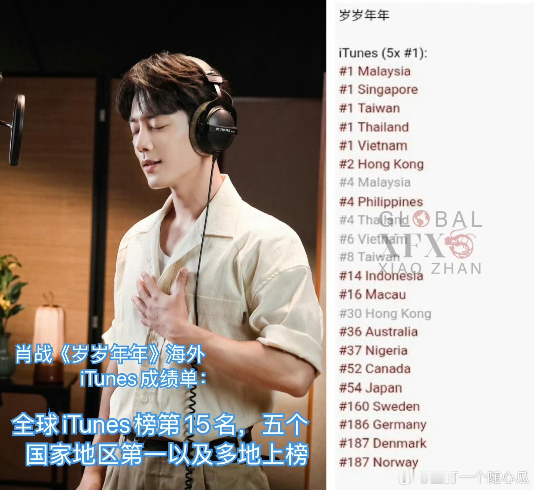肖战《岁岁年年》海外iTunes成绩单出炉,好厉害,强大的海外影响力!
