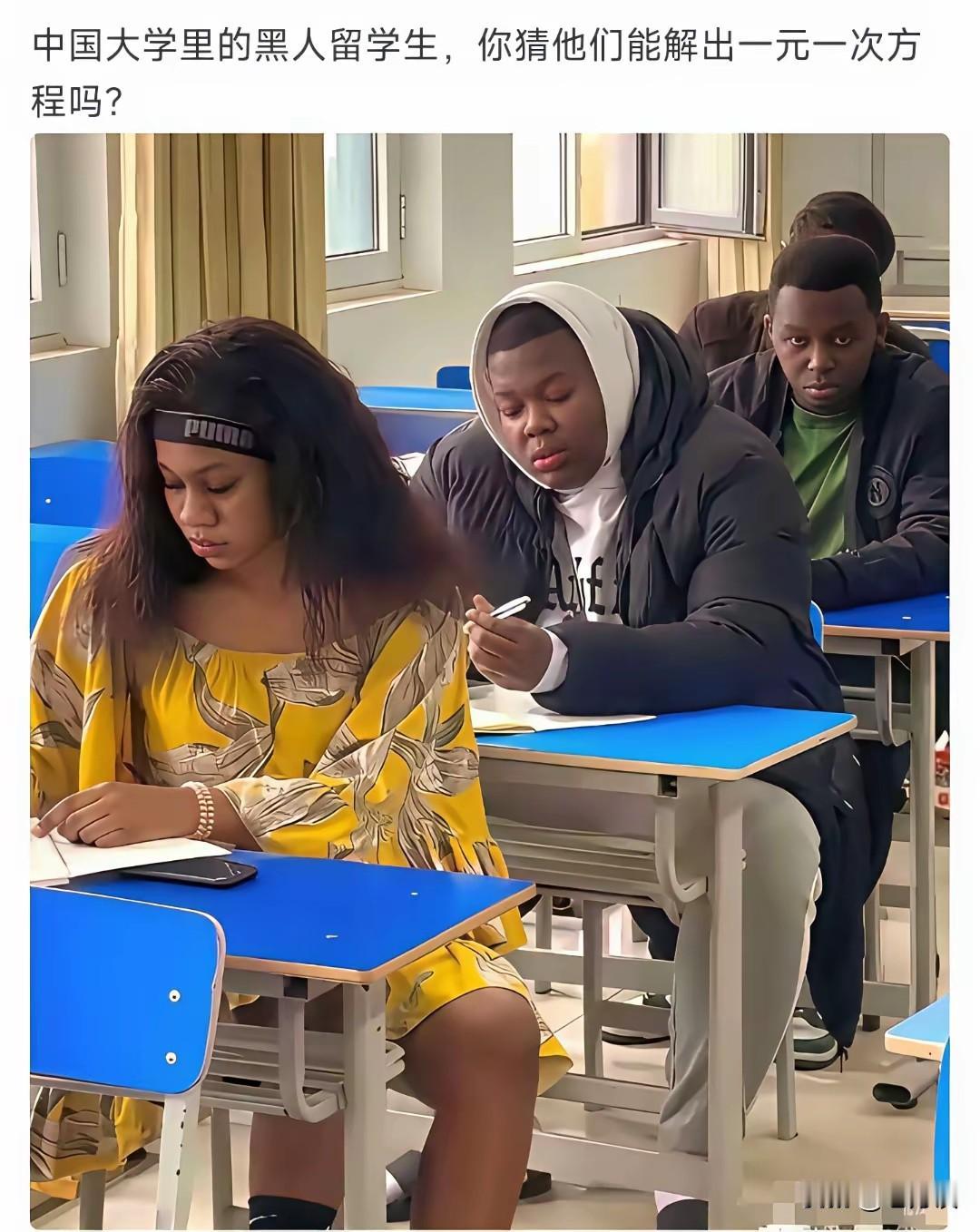 来华留学的留学生们正在测验,从他们的表情中看出他们被题目难到了,目瞪口呆,真的做不来。本以为来留学就是玩玩,想不到还要考试,居然还考的这么难,真的没学过,一元一次方程对于他们而言,真的太难了!