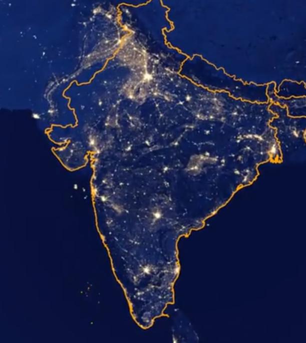 印度的面积也只有中国的三分之一,如果发电量是中国的三分之一计算下来单位面积的用电量是差不多一样的,整体看中印晚上平均差不多亮,而印度更不均衡就会有部分地方特别亮,在视觉上就会让人有印度更亮更发达的错觉。