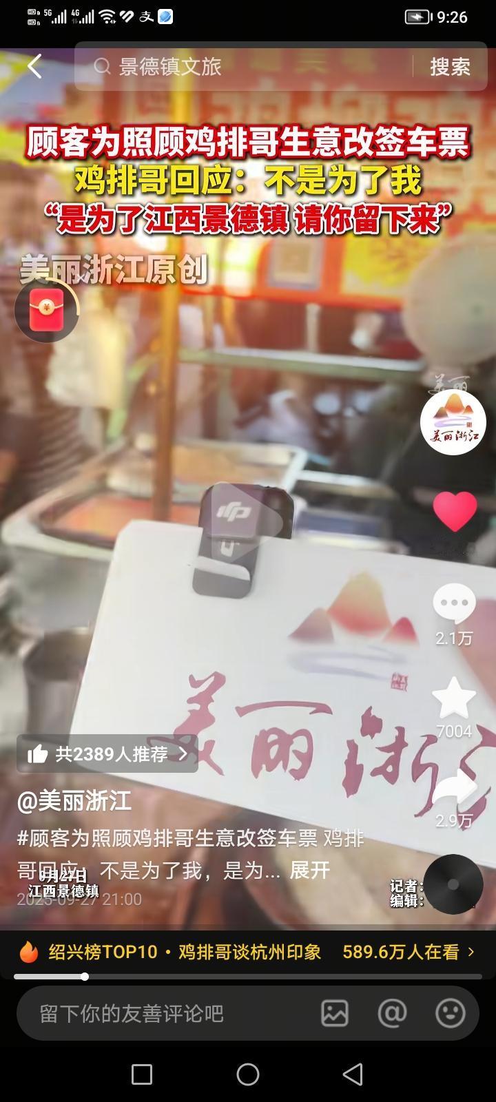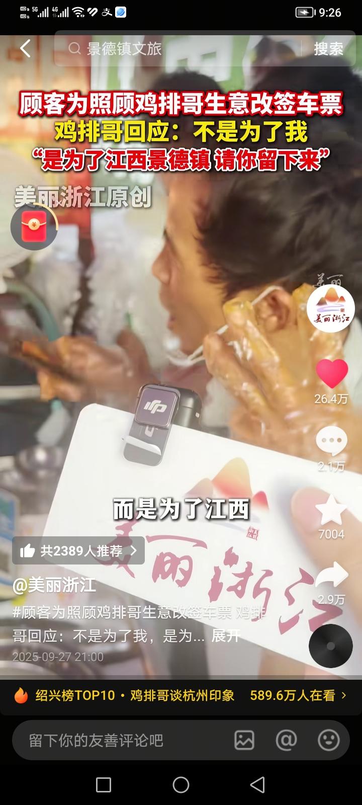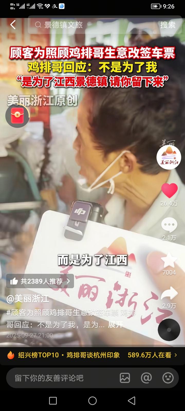 “@美丽浙江”这个浙江文旅号发“景德镇鸡排哥”的视频已经超过80个了,浙江人民对