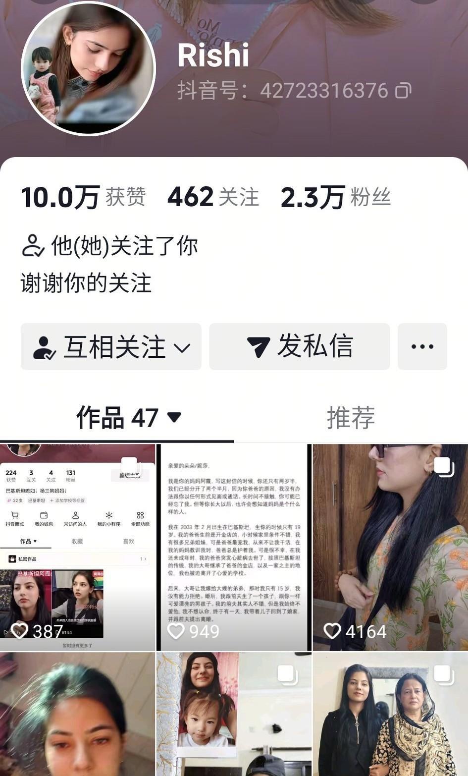 怎么回事?杨二狗的巴基斯坦前妻阿霞,怎么最近在我们国内的平台上,销声匿迹了?看了她的抖音账号,从6月1号开始,就已经不再更新了,然后我抖音私信她,也没有回应,而且归属地也不再显示巴基斯坦了,是卸载抖音了?还是说真的退网了? 是不是阿霞已经又嫁了新的巴基斯坦人老公,然后她新老公不让她接触网络、不让她拍视频了? 而且,她在外网的油管平台,也已经停止更新视频了,就是不知道她在洋抖(tiktok)的视频,还会不会继续更新了。 而且,以前的那些国内的所谓霞粉,也早已经无影无踪了,那个阿霞所谓的“河北干妈”和“北京干妈”,也没声音了,也不更新阿霞视频了,no tk 呀!#秋日领花茶#