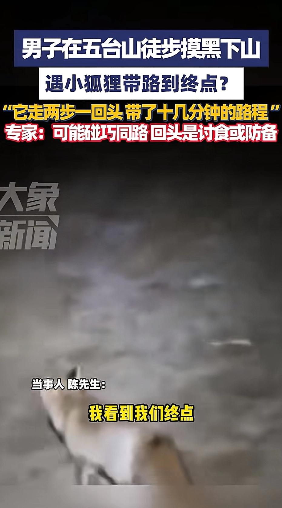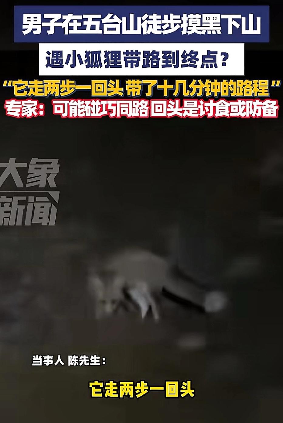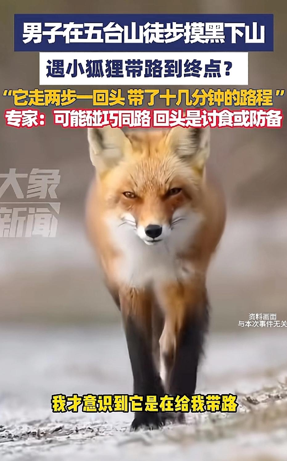 男子徒步五台山,天黑后才打着手电筒下山,途中邂逅了一只狐狸。那狐狸在前方走走停停