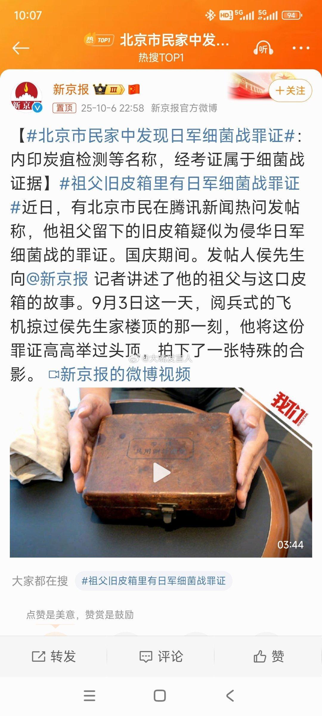 北京市民家中发现日军细菌战罪证 赶快寄到湖北梁某萍老师家里吧,这位高校学者认为,侵华日军的所有罪行,她得看到知道了所有扎实的证据,她才认同。[吐][吐][怒][怒]