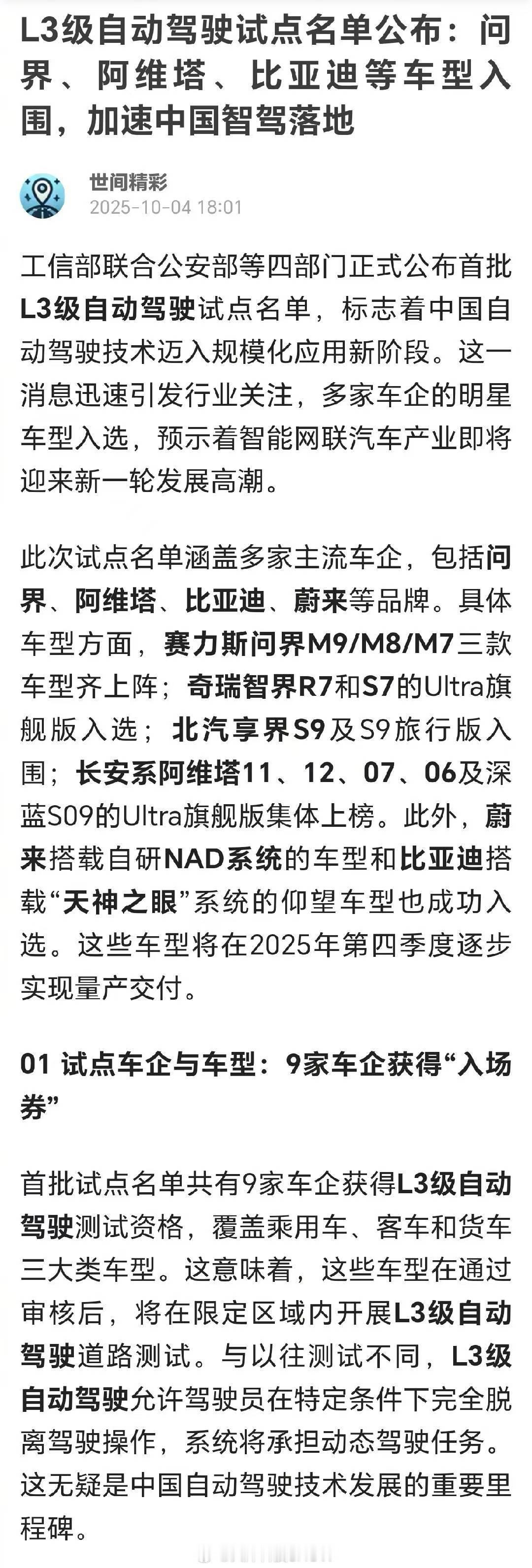 工信部联合公安部等四部门公布首批L3级辅助驾驶试点名单,我的智界R7在列,看看有你们的车吗?[嘻嘻]金价智驾数码团