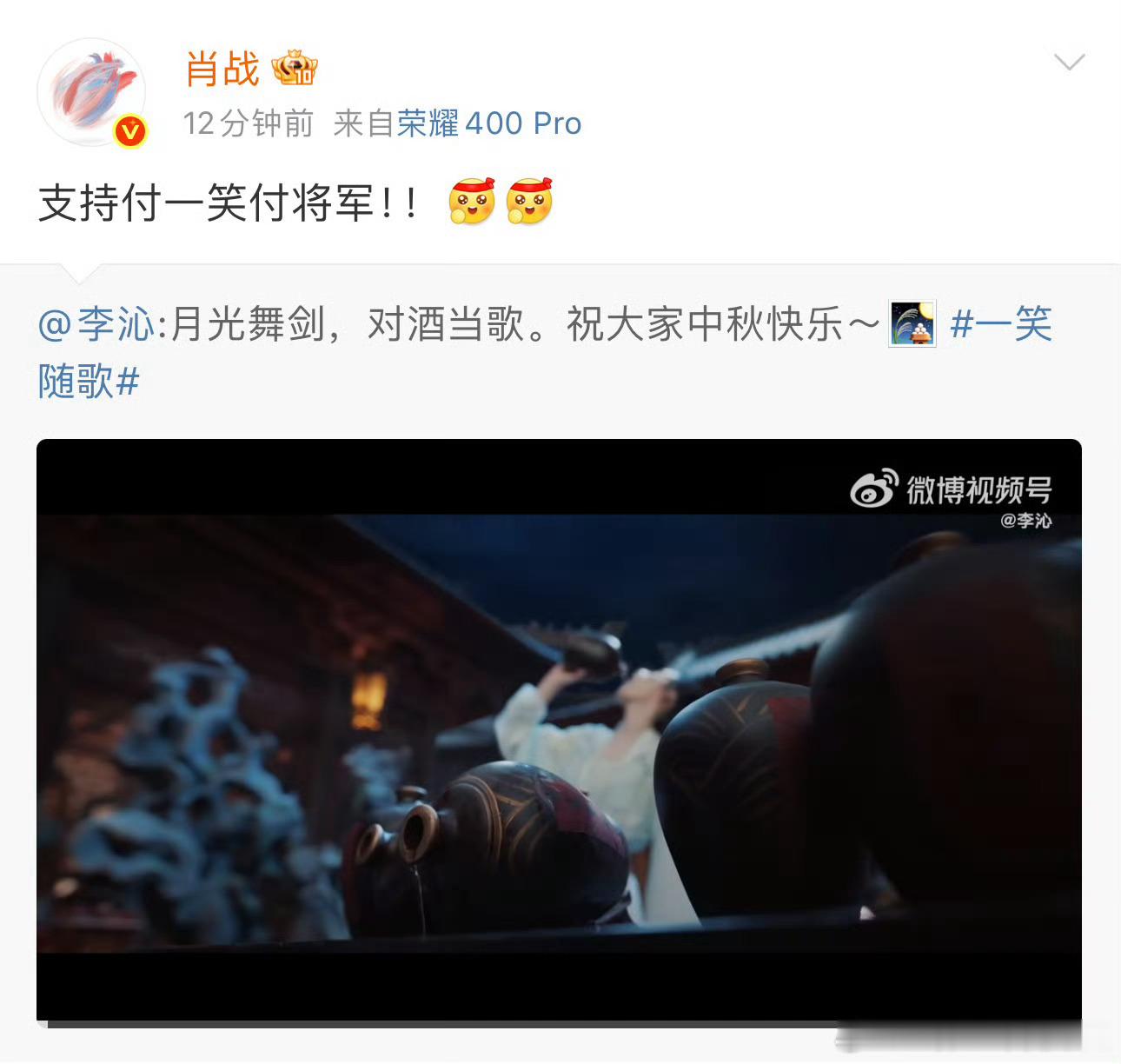 肖战为李沁的一笑随歌打call ,梦海组! ​​​