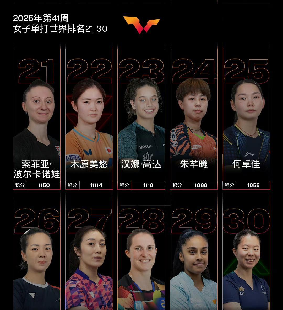 国际乒联最新世界排名! 国际乒联2025年第41周世界排名如图所示。 本周将加