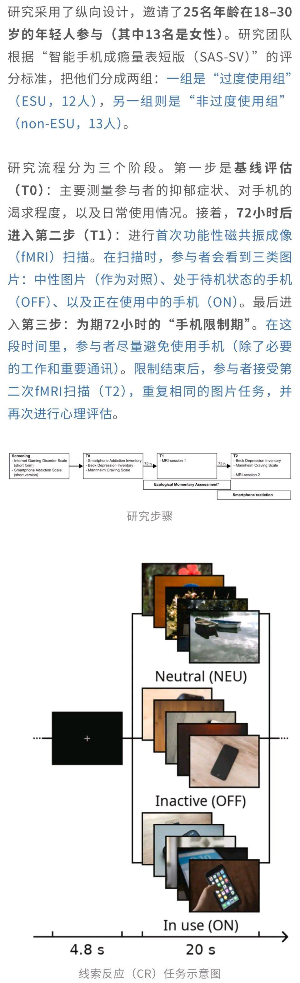 现在刷手机上头的人可太多了,本来只想看一眼,结果一刷就是几小时,时间全被“吃”掉。不过最近德国海德堡大学研究团队有惊人发现,他们选了25名年轻人做实验,用功能性磁共振成像技术研究限制用手机72小时后大脑变化。 结果显示,才3天不刷手机,大脑奖赏系统就更活跃,视觉系统变弱,人会更轻松,睡眠和情绪也能改善。而且首次从神经化学层面揭示,这和多巴胺、血清素通路密切相关。看来,放下手机歇三天,没准大脑就能“重启”,大家不妨试试。